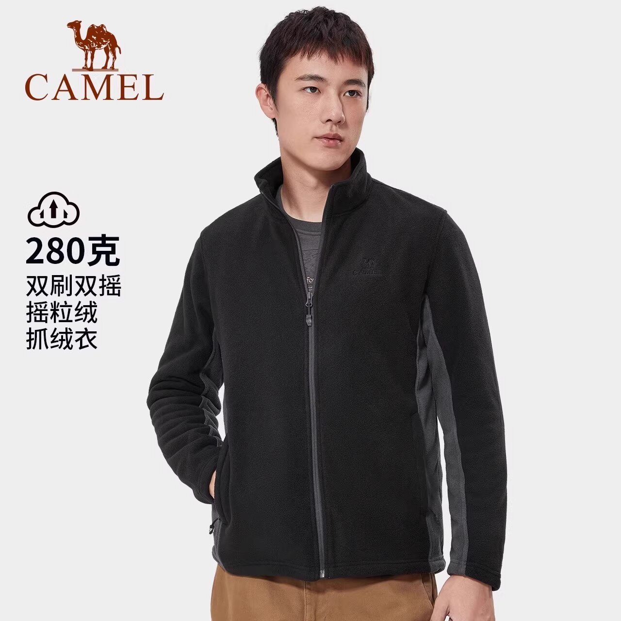 骆驼户外抓绒衣男立领防风薄绒保暖冲锋衣内胆运动外套摇粒绒卫衣