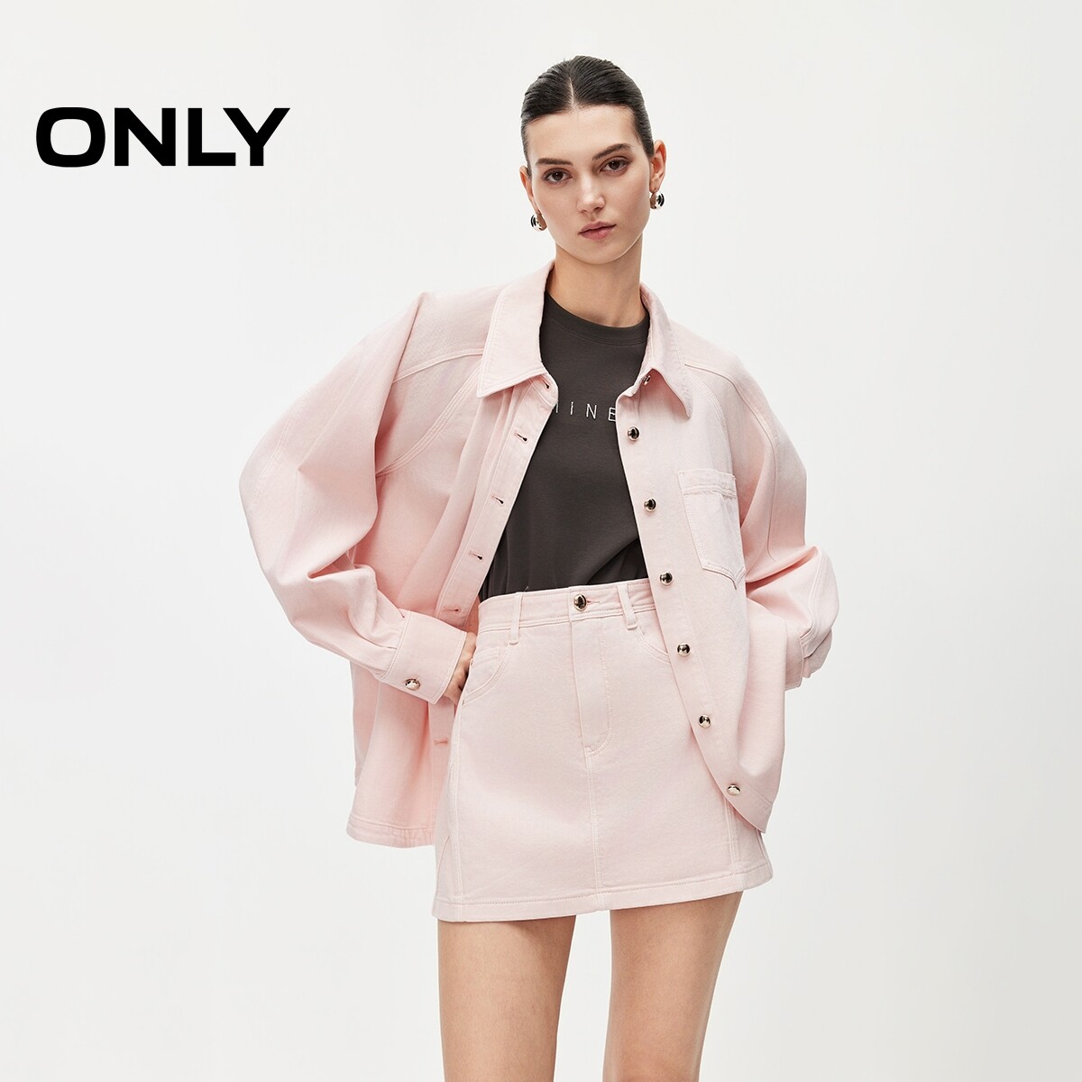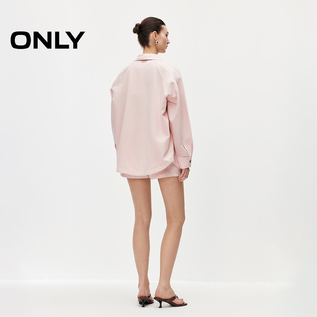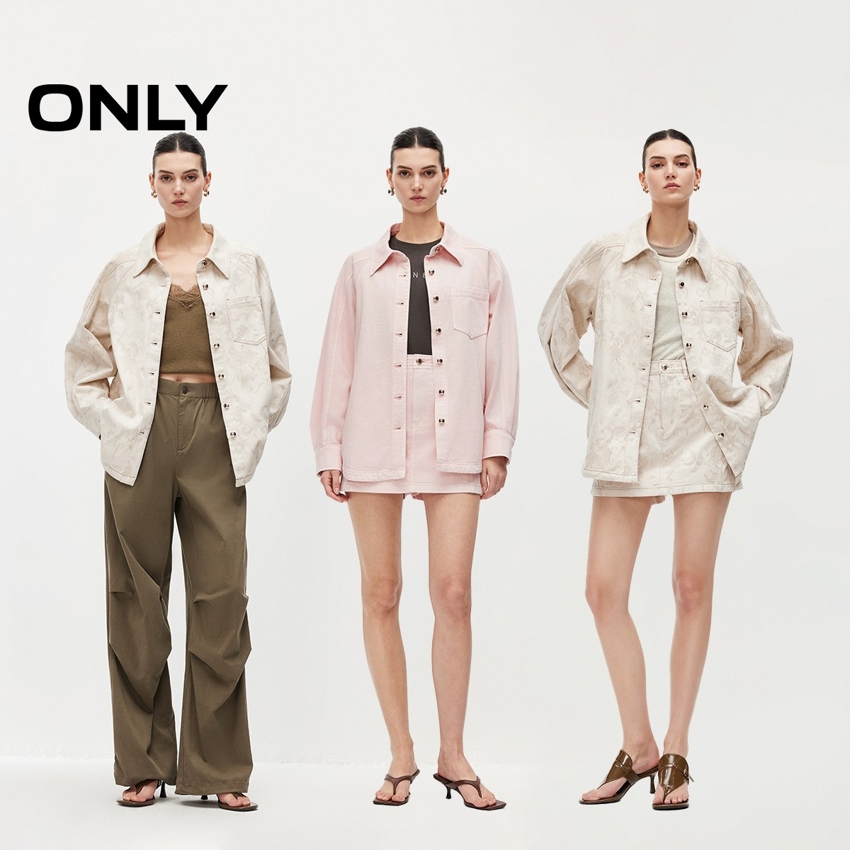 ONLY2026春季新款个性暗纹满印肌理感立体廓形长袖宽松牛仔衬衫女