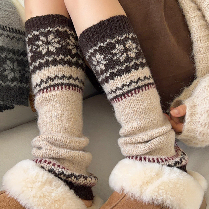 费尔岛羊毛袜套女秋冬季2025新款灰色腿袜堆堆袜保暖配雪地靴腿套