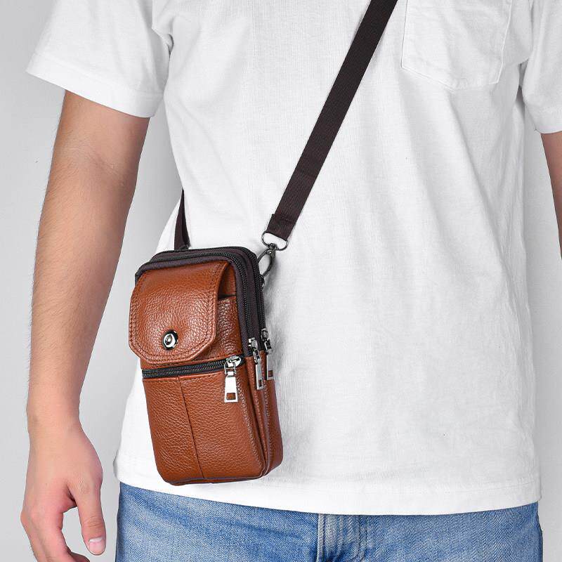 新挂腰牛皮装放手机零钱用的包男穿皮带手机袋中老年人跨腰式腰包