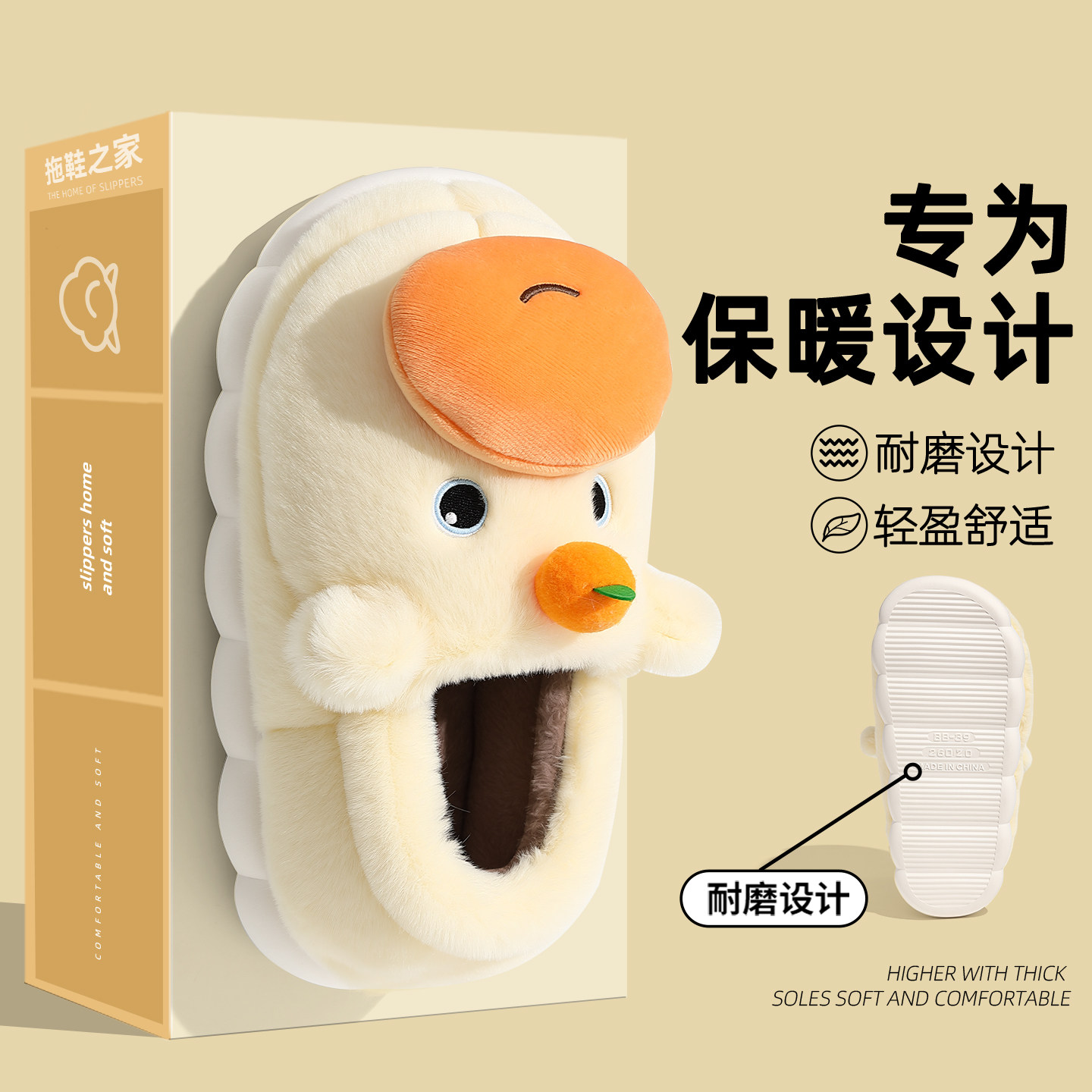 亚束棉拖鞋男士破茧外穿厚底增高情侣大码室内居家冬季保暖女新款