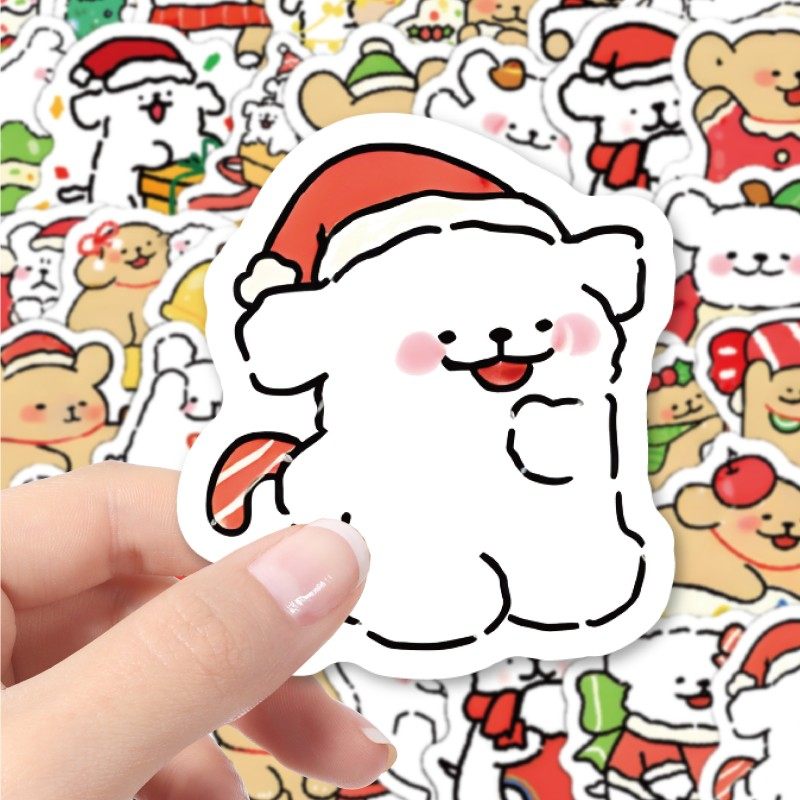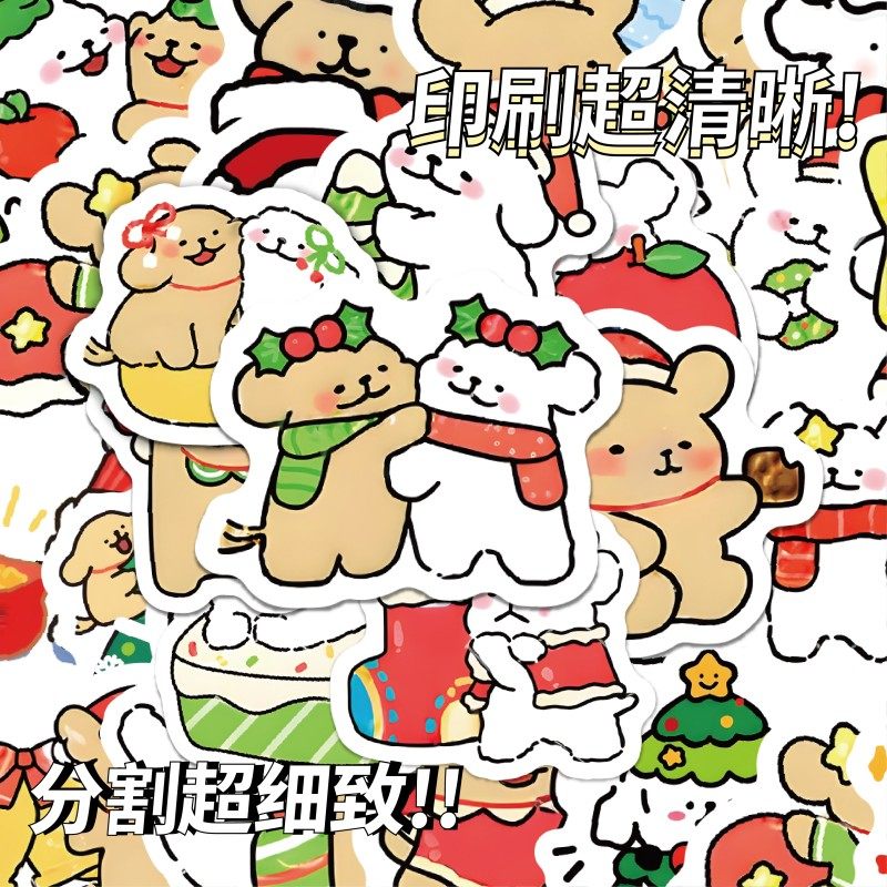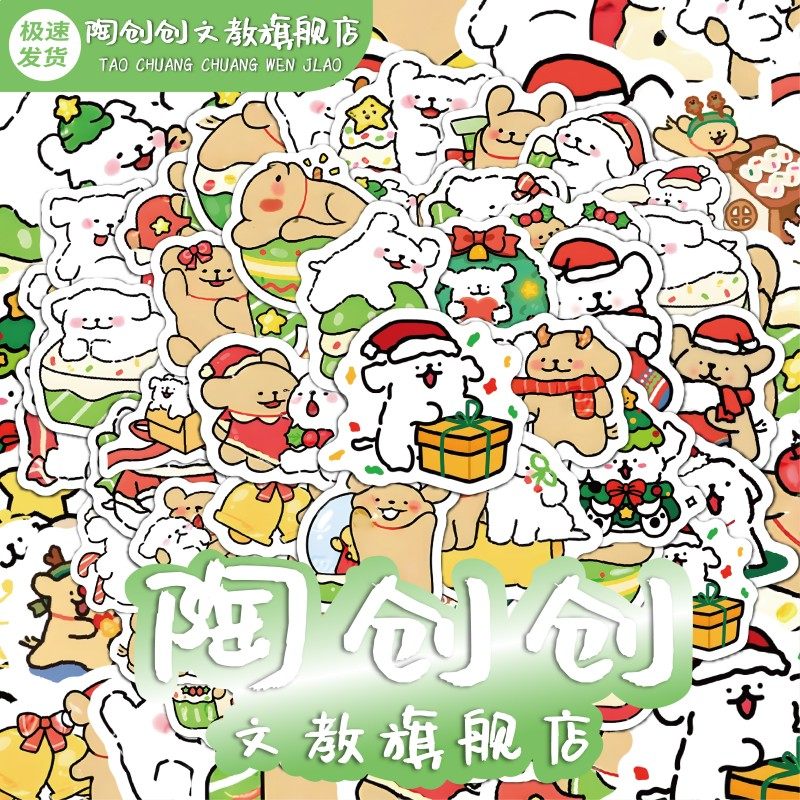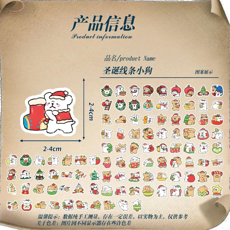 圣诞线条小狗贴纸可爱卡通圣诞节周边小白小金毛手机壳手账行李箱装饰防水贴画