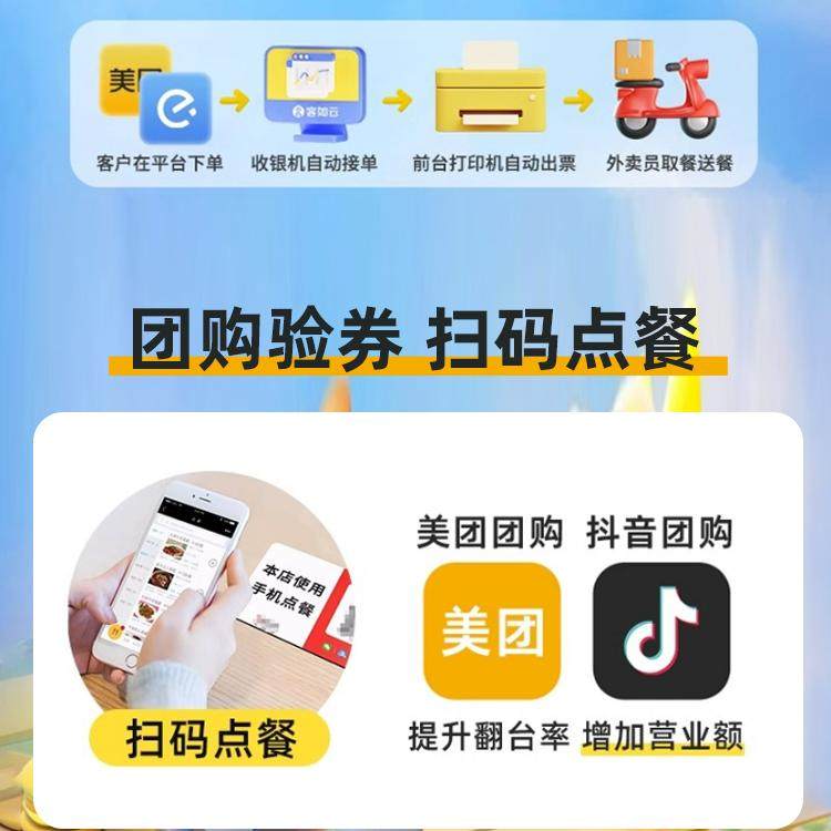 客如云收银一体机餐饮扫码点餐机零售超市水果店称重快餐美团外卖抖音团购美食城烧烤火锅店KDS厨显收银系统