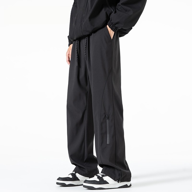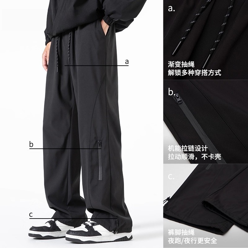 冲锋裤男士秋季2025新款防风防水宽松直筒运动工装长裤子黑色加绒