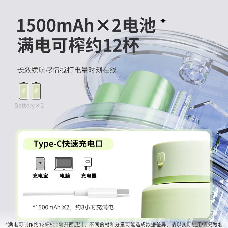 臻米家用便携式榨汁机小型多功能果汁机无线充电2025榨汁杯吨吨桶