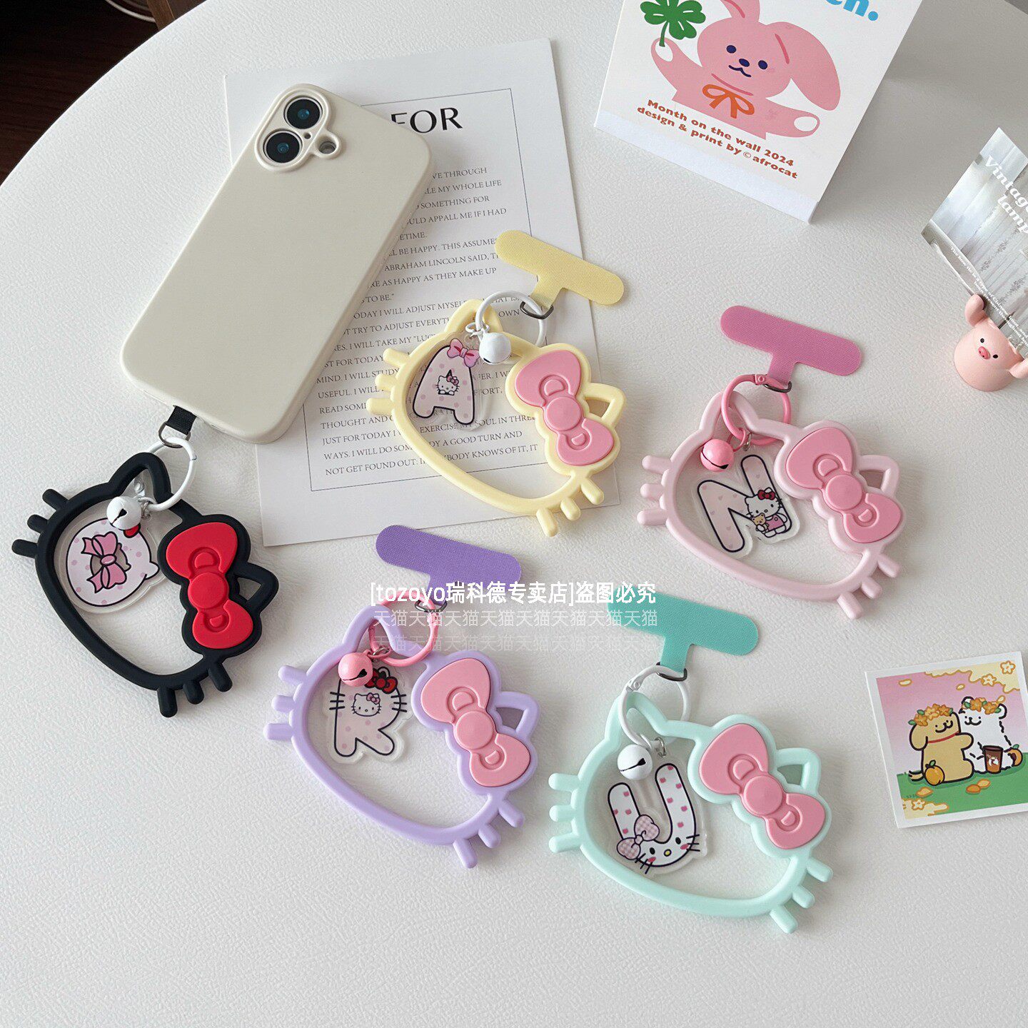巨可爱猫咪手机链挂绳硅胶蝴蝶结腕带挂手腕卡通手绳链钥匙包包挂饰漂亮好看链条挂链女款挂件猫手环带垫片壳
