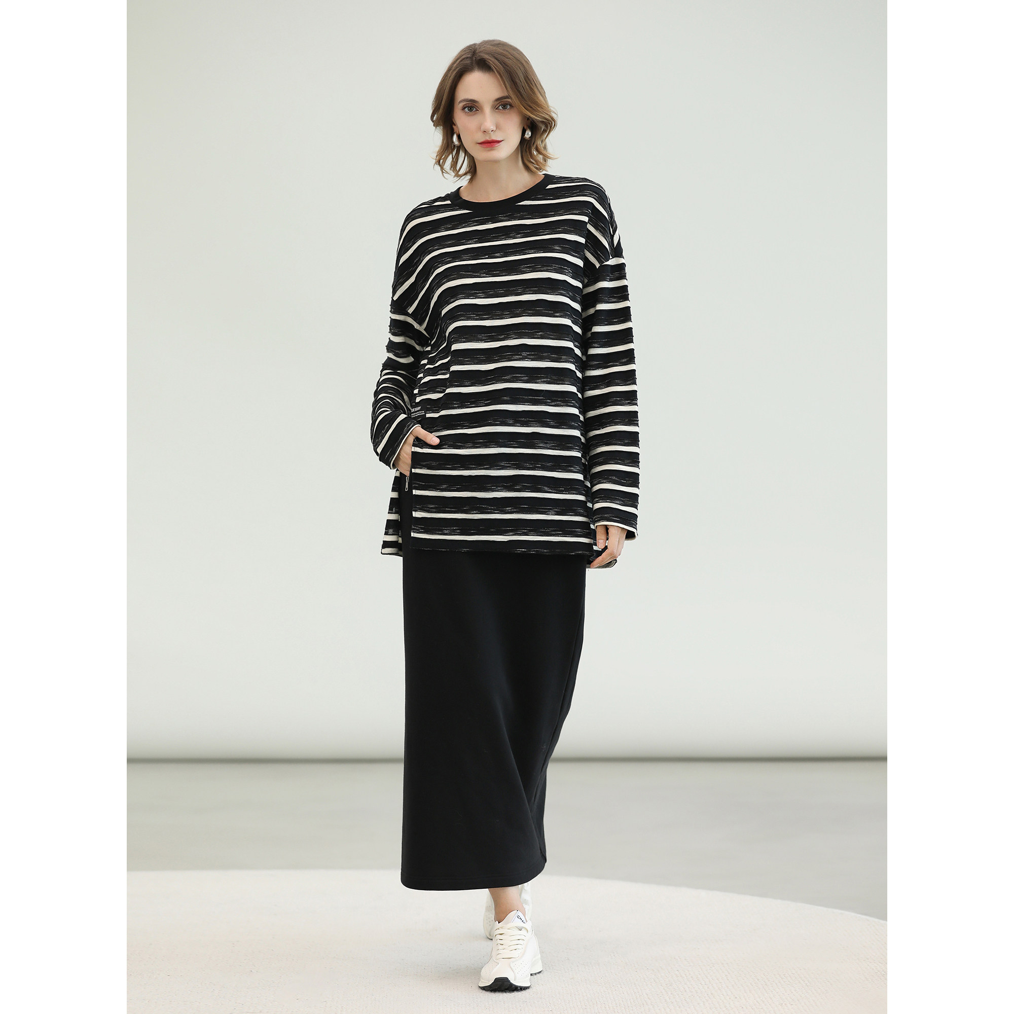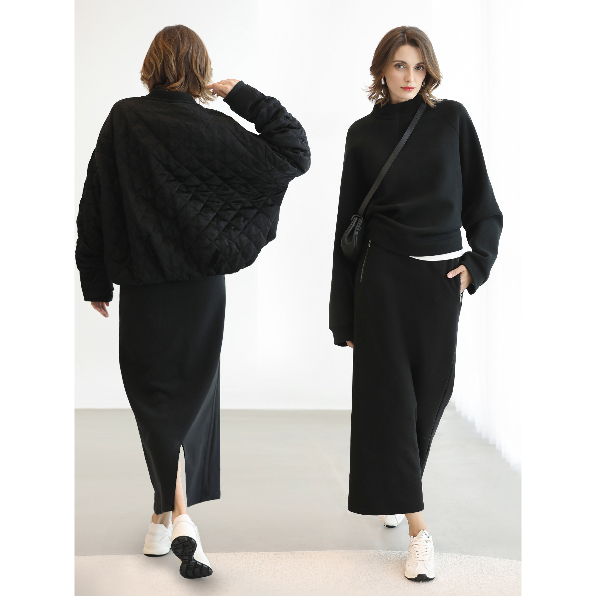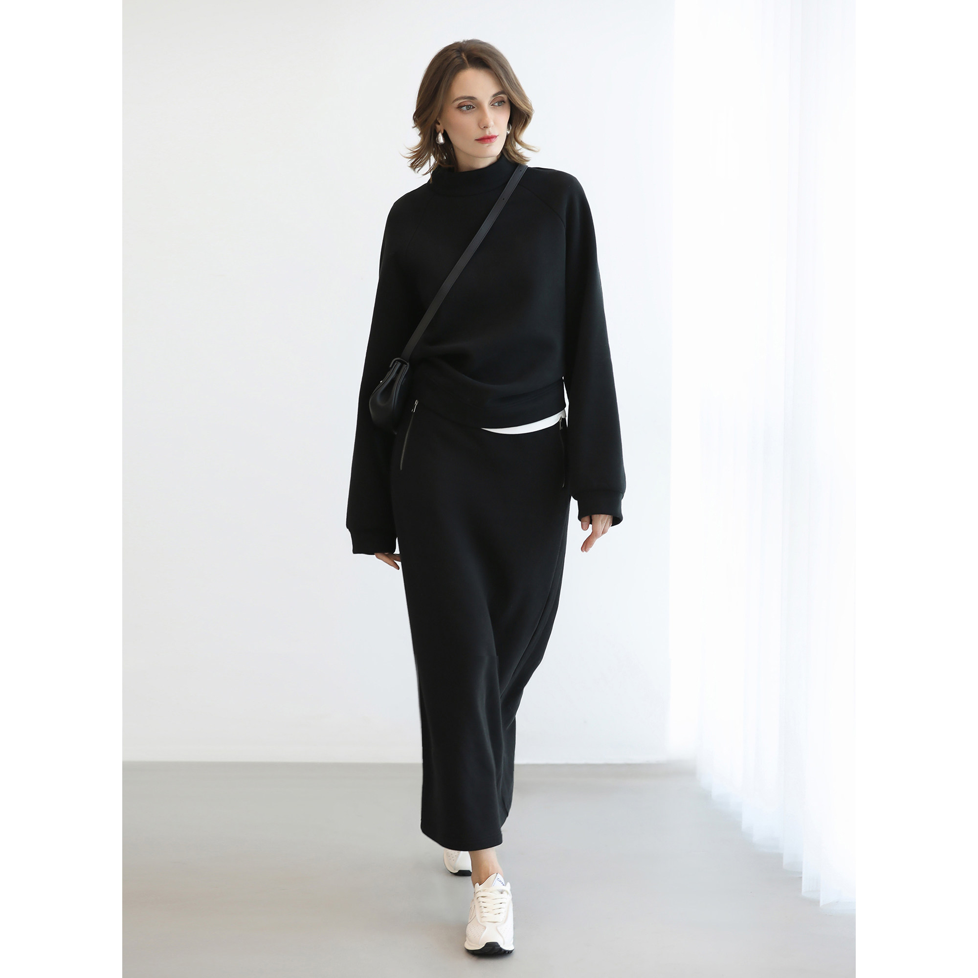 SIINSIIN直筒裙加绒2025年新款高腰收腹半身裙女黑色显瘦A字裙tk