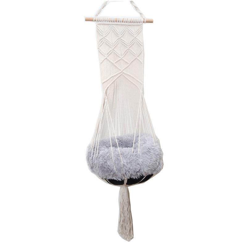 北欧棉绳手工编织挂毯网兜四季通用宠物窝猫咪吊床秋千吊篮