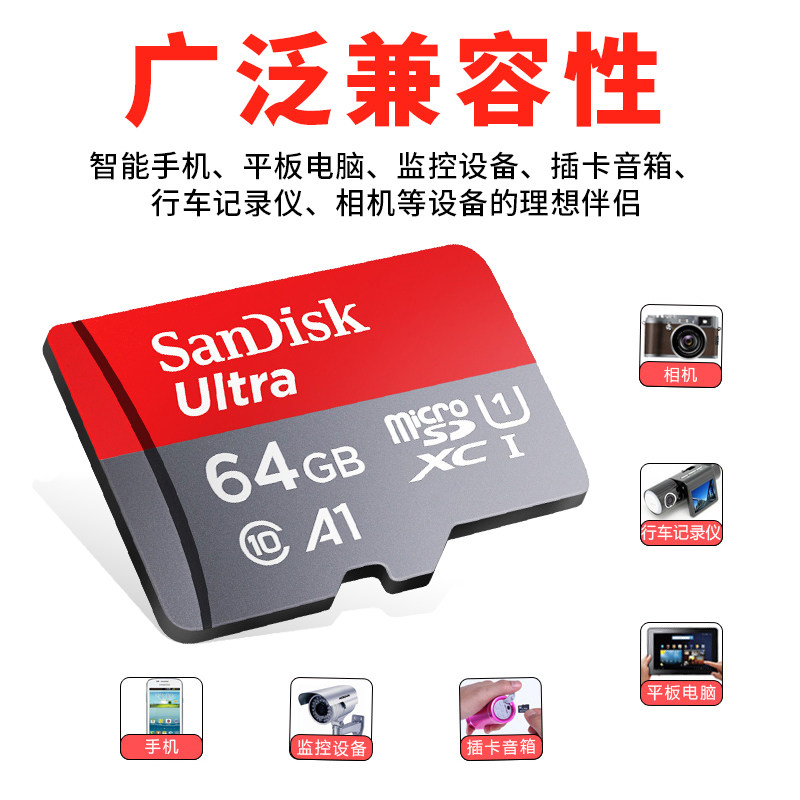 Sandisk闪迪64G内存卡Class10C10高速MicroSD手机存储TF卡120MB/S