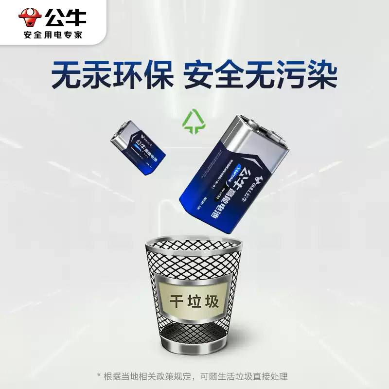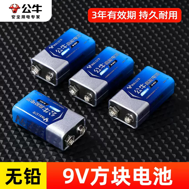 公牛方块叠层大容量电池9v6F22遥控器无线话筒万能万用表9号烟雾报警器九伏碳性正品寻巡线测线仪胎心监护仪