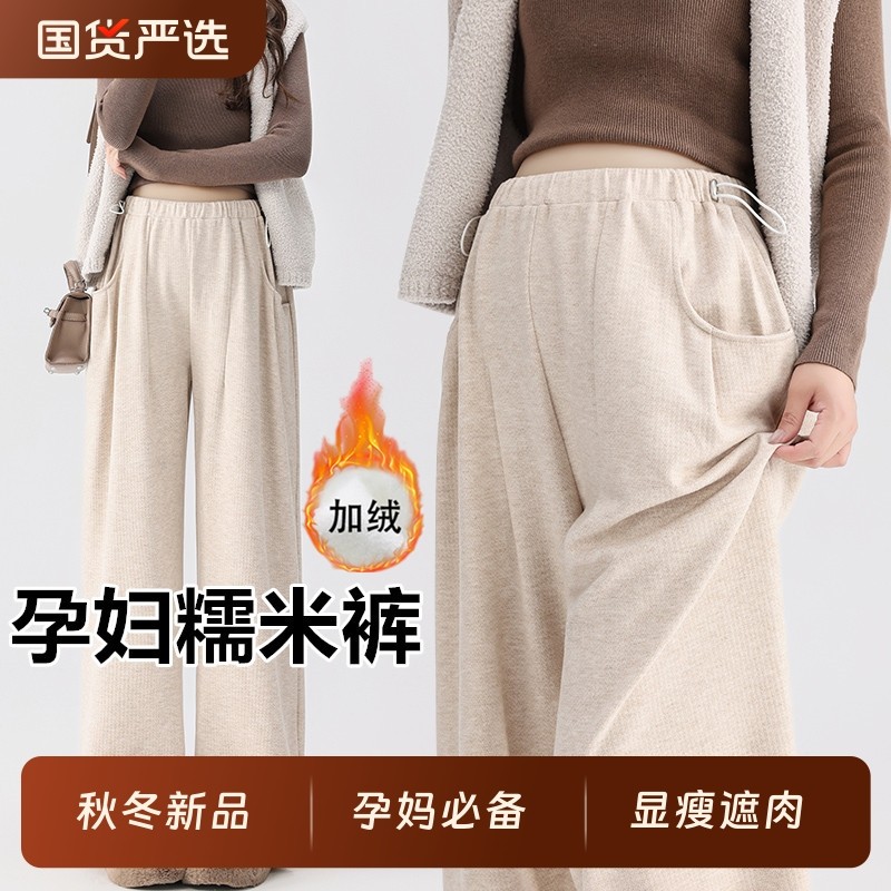 孕之优品孕妇裤秋冬外穿2025新款垂感加绒糯米裤无托腹孕妇阔腿裤