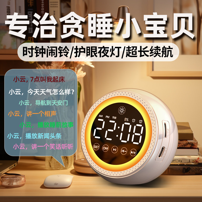 智能闹钟蓝牙音箱多功能护眼夜灯学生不迟到神器连接电脑低音炮