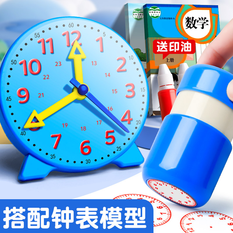 时钟印章儿童认识钟表和时间小学生教具钟表模型学习器教师老师用一年级二年级数学表盘时间规划用道具教学