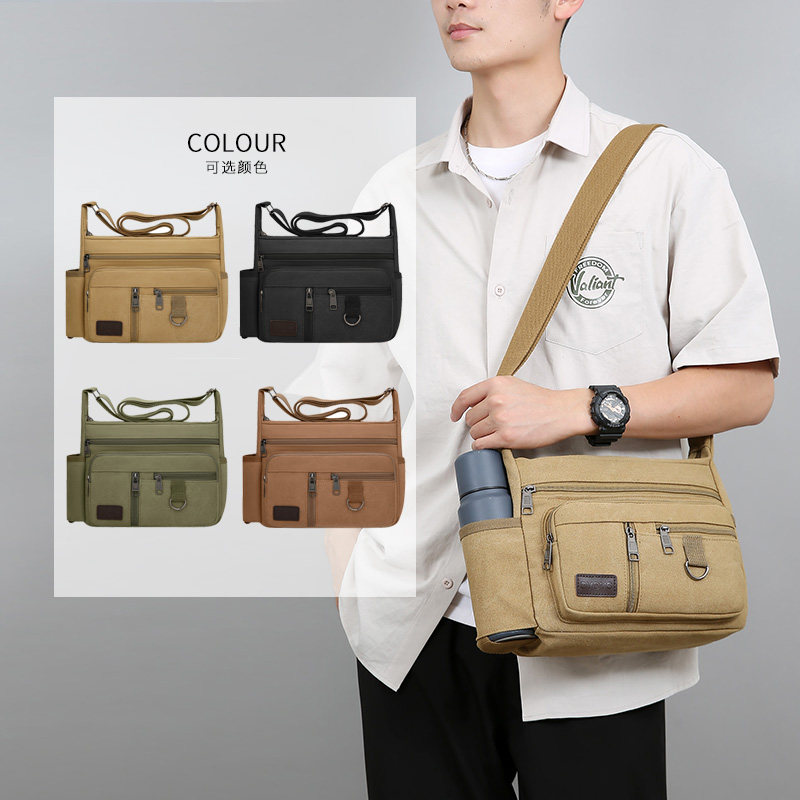斜挎包水杯男包手机包帆布包男新款大容量背包休闲单肩结实多层
