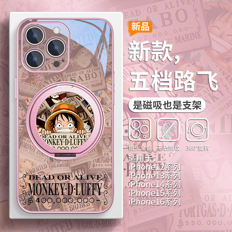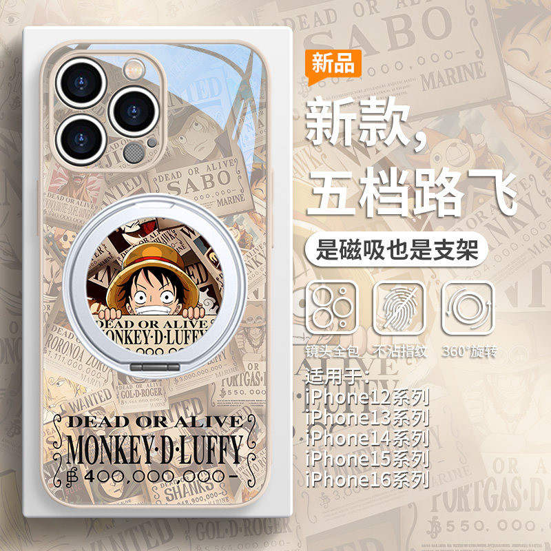 适用华为苹果16plus磁吸带支架手机壳iPhone15promax海贼王14pro5档17air尼卡路飞13pro高级感12支点壳mate70