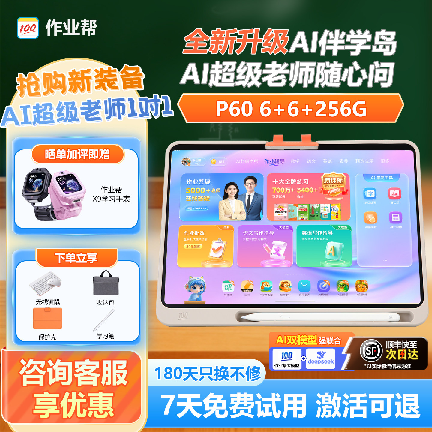 作业帮P60学习机旗舰XE一年级到高中智能平板T60Ultra学练机S50