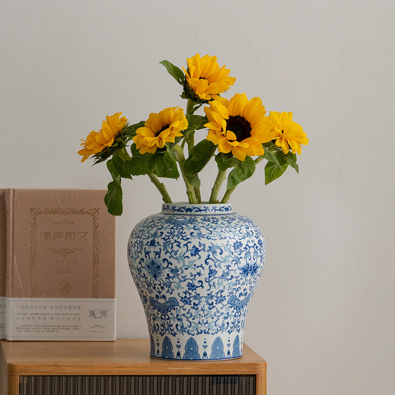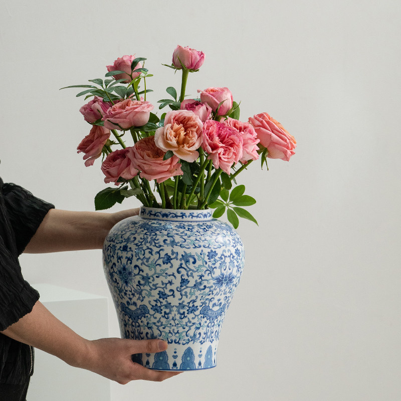 青花复古花瓶陶瓷客厅插花装饰摆件鲜花餐桌办公室大口径水培花器