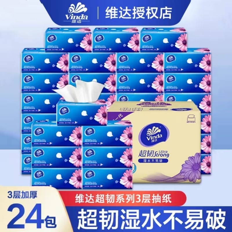 维达超韧抽纸3层24包100抽湿水不易破纸巾餐巾面巾纸卷纸抽纸巾