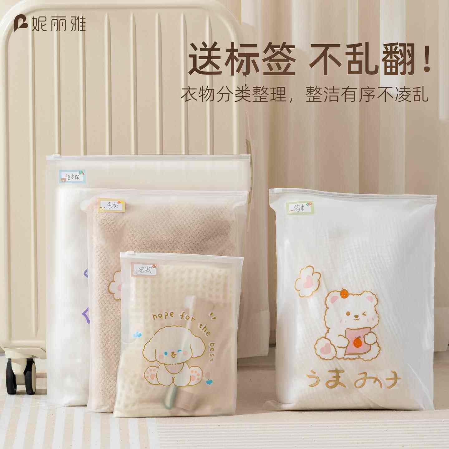 小红书同款爆款简约分类收纳袋便携透明防水拉环学生密封包装磨砂