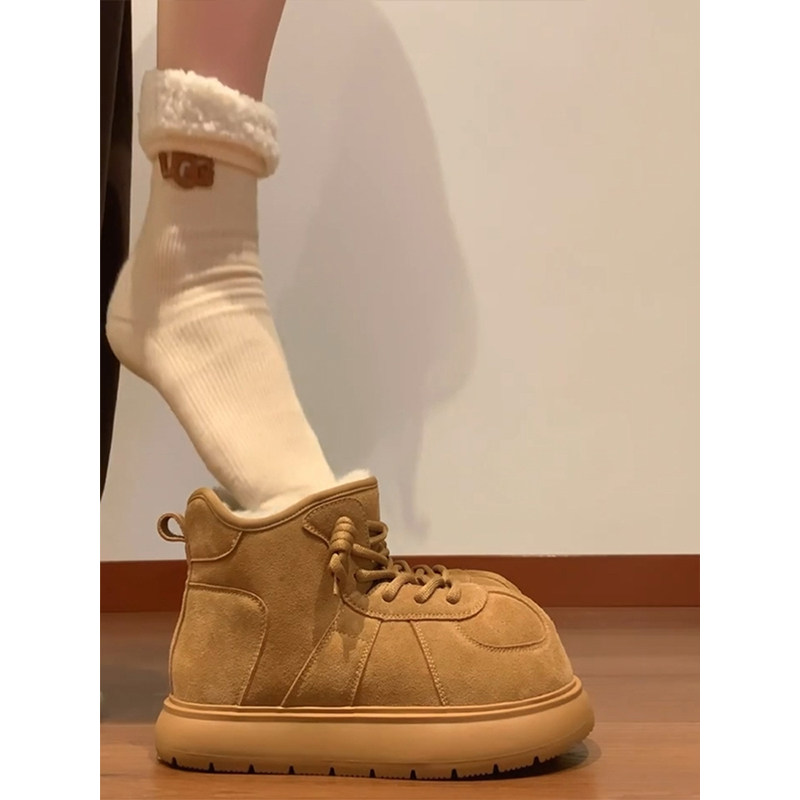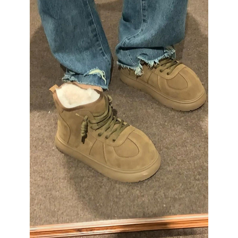 miu家厚底雪地靴女冬季真皮短靴羊毛侧拉链增高厚底加绒毛毛棉鞋