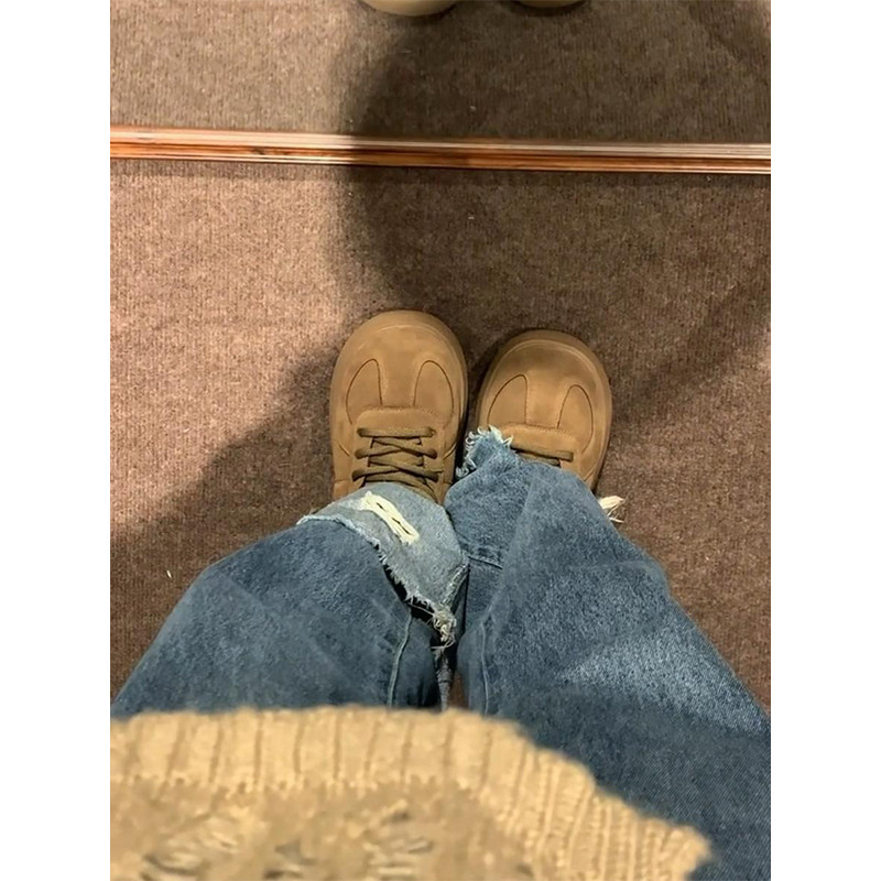 品牌真皮雪地靴女秋冬季2024新款短靴复古厚底增高马丁靴加绒棉鞋