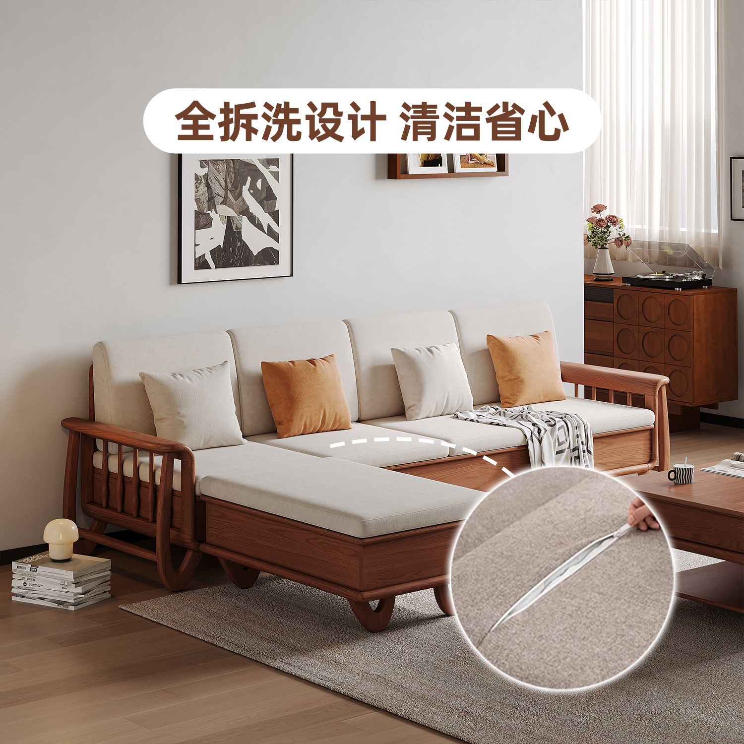 新中式小户型冬夏两用转角简约客厅沙发直排现代高箱储物实木沙发