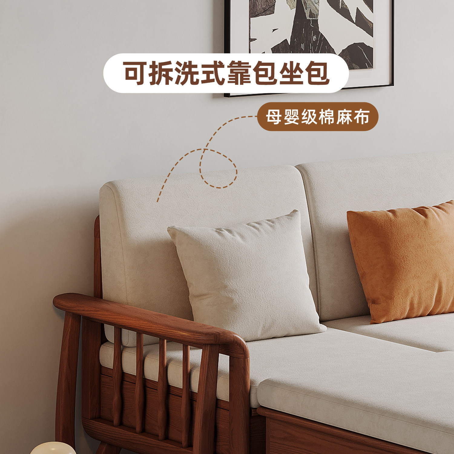 新中式全实木沙发客厅2026新款三人位北欧简约现代小户型直排沙发