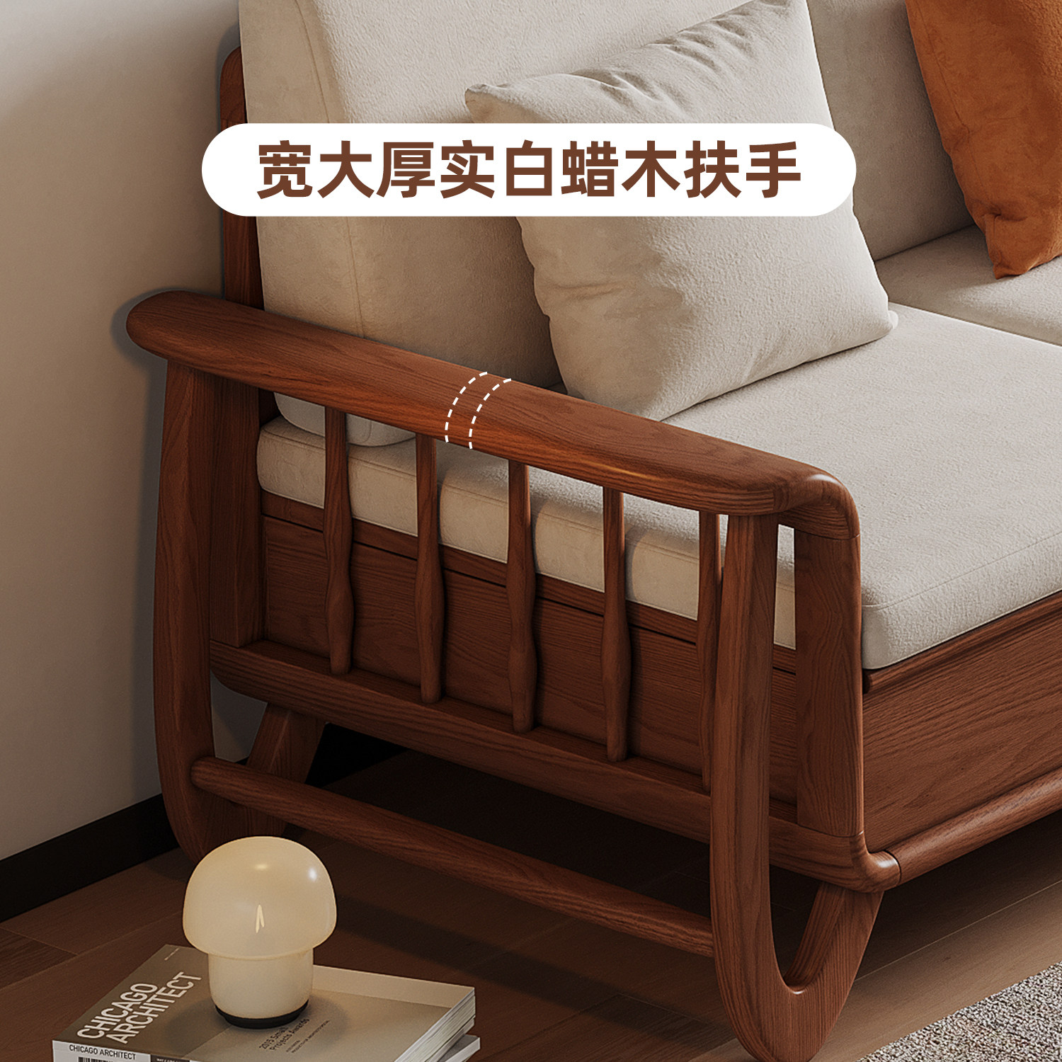 实木沙发新中式橡木真皮沙发北欧客厅小户型家具原木直排布艺沙发