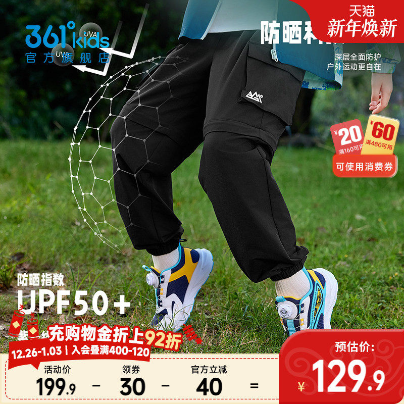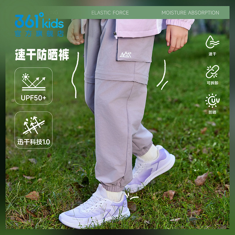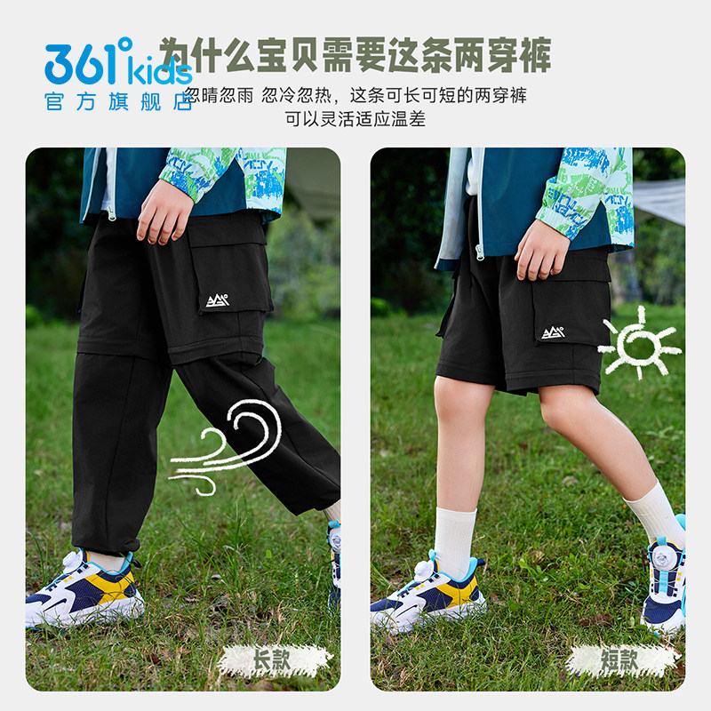 防晒迅干|361童装男女童运动梭织长裤2025秋季新款户外可拆卸裤子