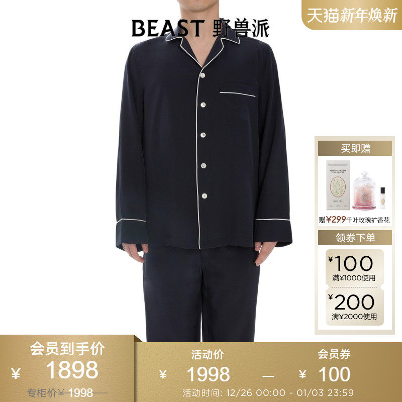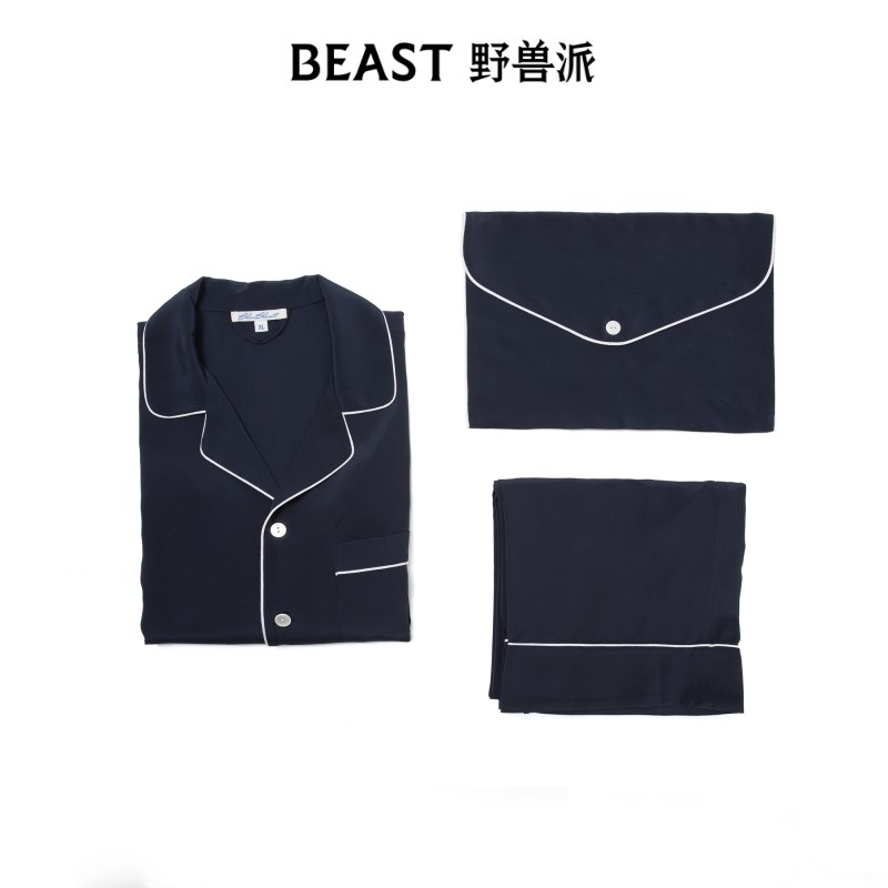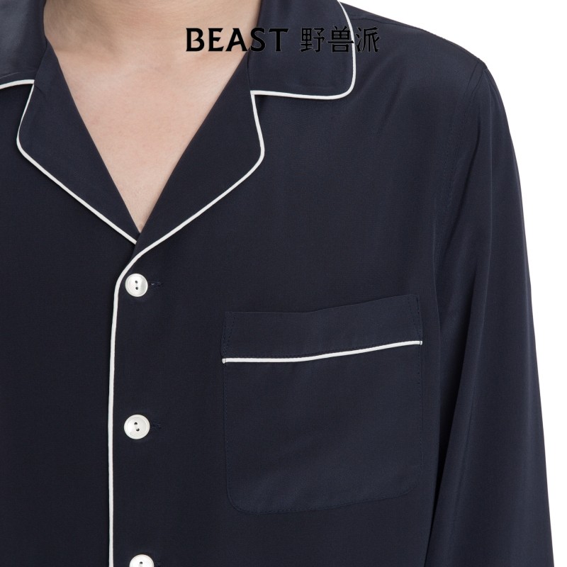BEAST野兽派绅士男女双绉真丝家居服套装情侣睡衣