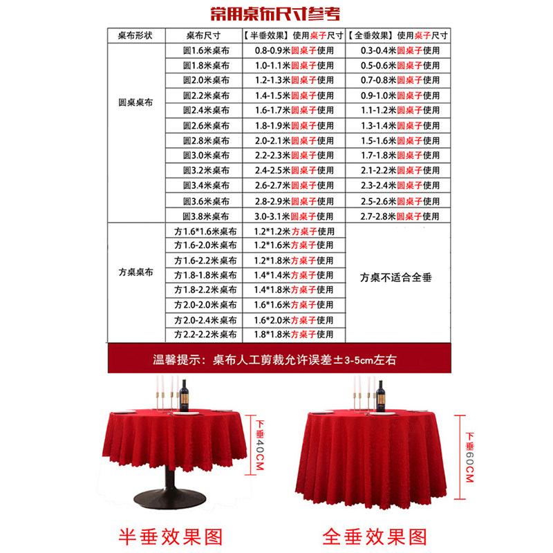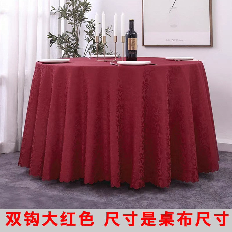 酒店大圆桌桌布饭店商用圆形餐桌布台布红色结婚布艺圆桌布防烫