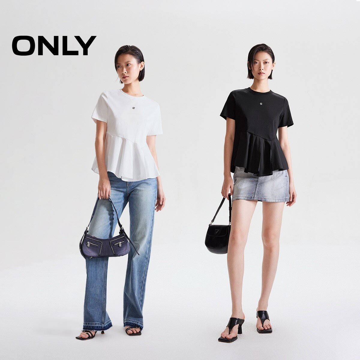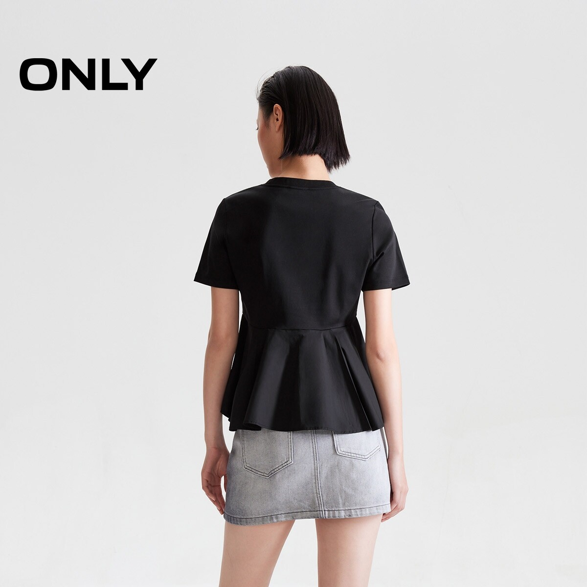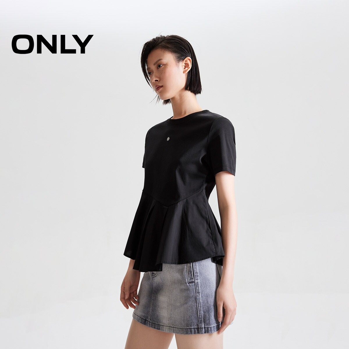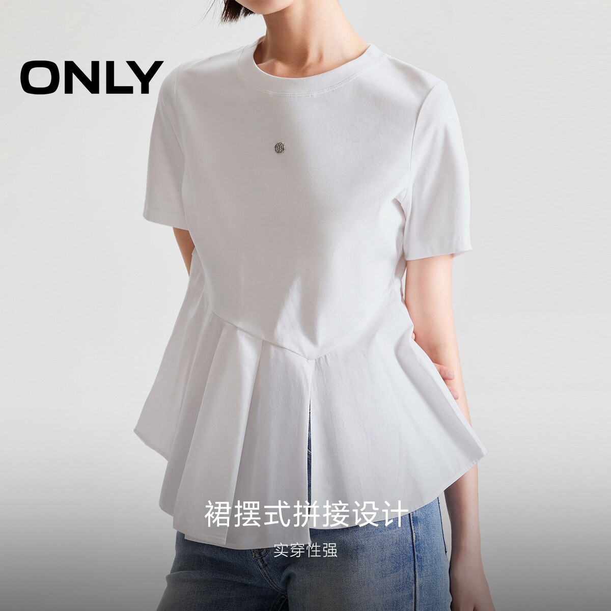 【ONLY奥莱】春款裙摆式拼接A字显瘦版型纯色螺纹圆领短袖T恤女