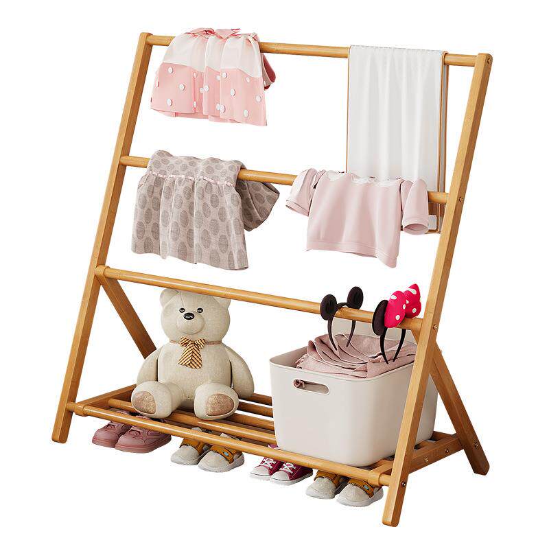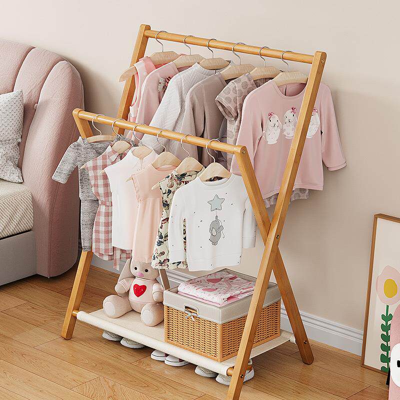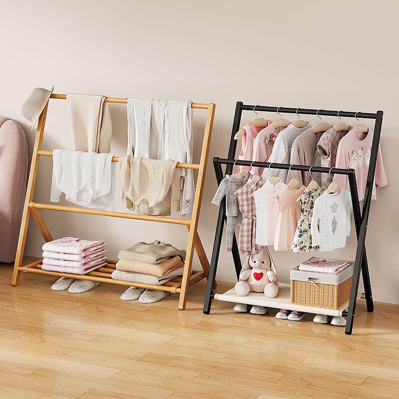 拉车套罩简易儿童落地挂衣架宝宝矮款折叠衣帽架落地卧室小型晾衣架挂置物