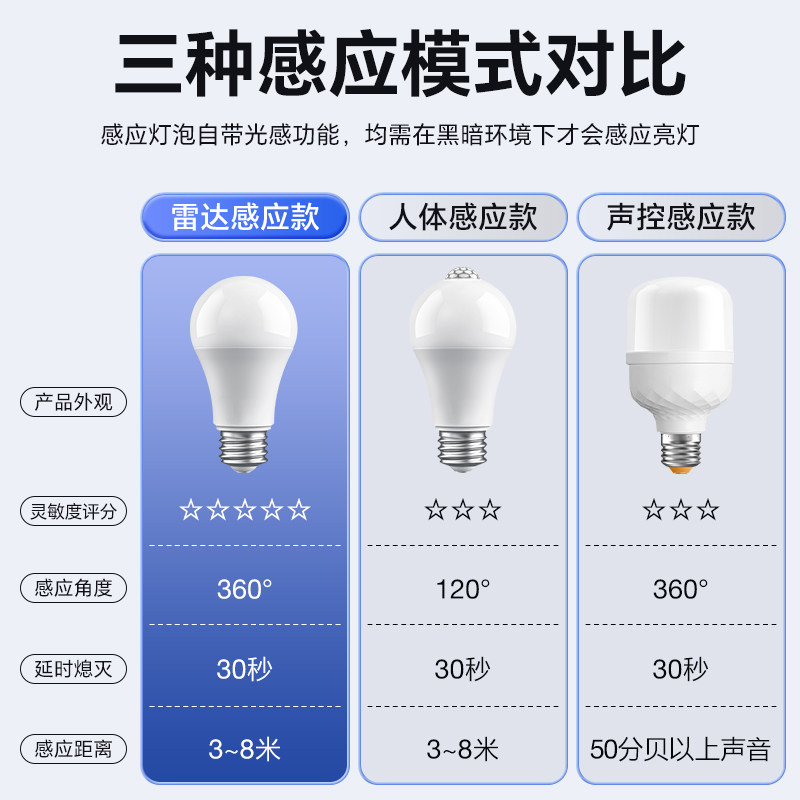 红外线人体感应灯楼道过道走廊楼梯灯雷达智能声控声光控感应灯泡