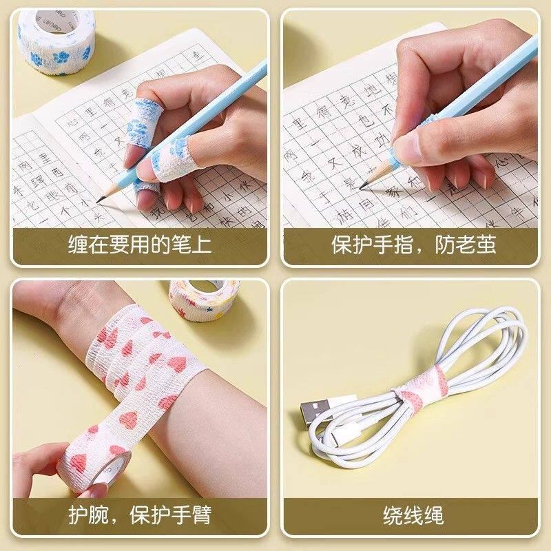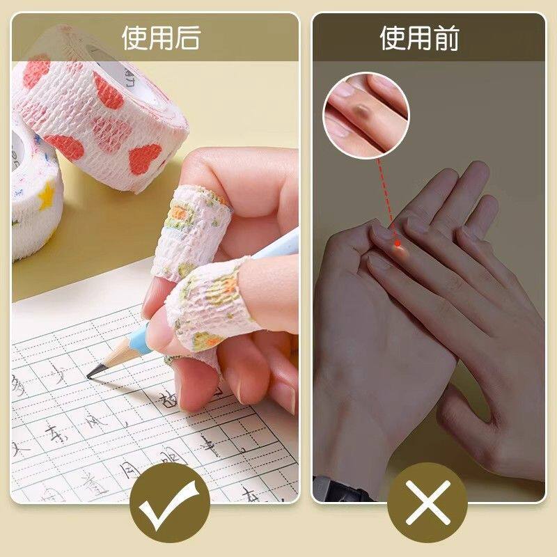 得力护指绷带小学生写字手指保护套握笔绷带护手缠指防磨手防茧带自粘胶布带女生高颜值儿童握笔胶带护指神器