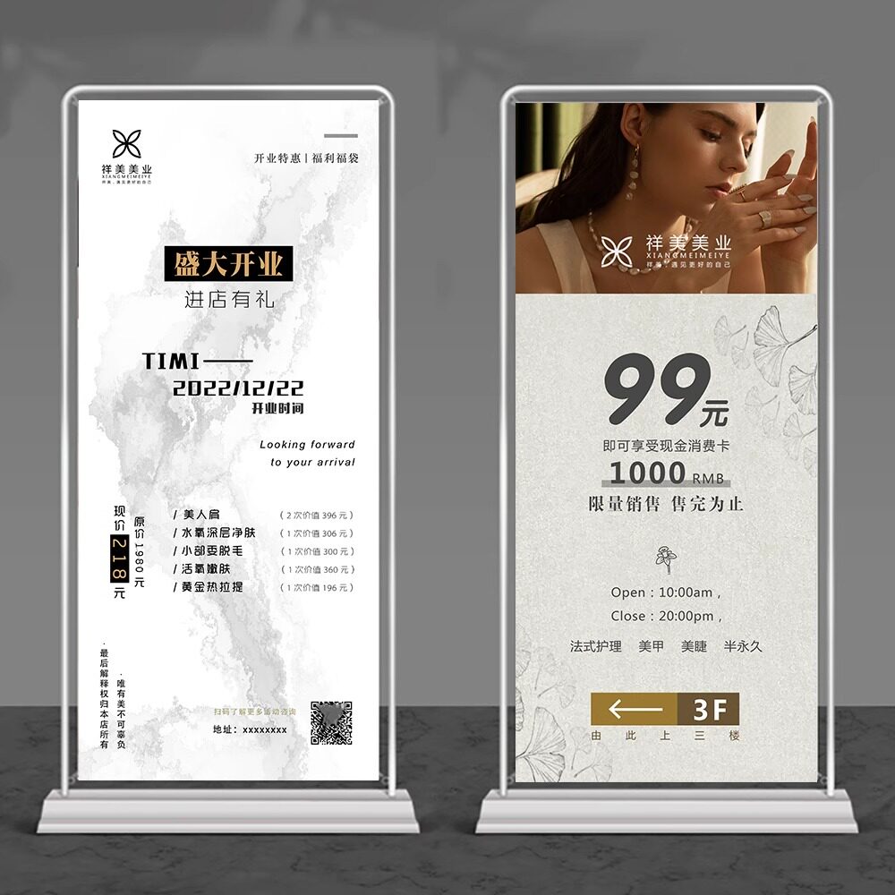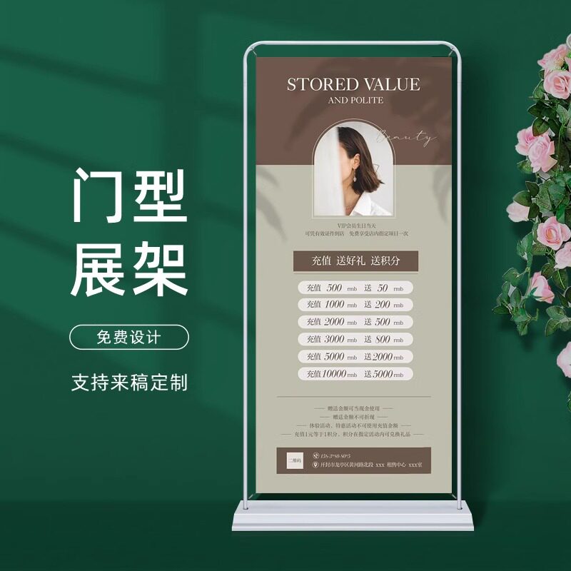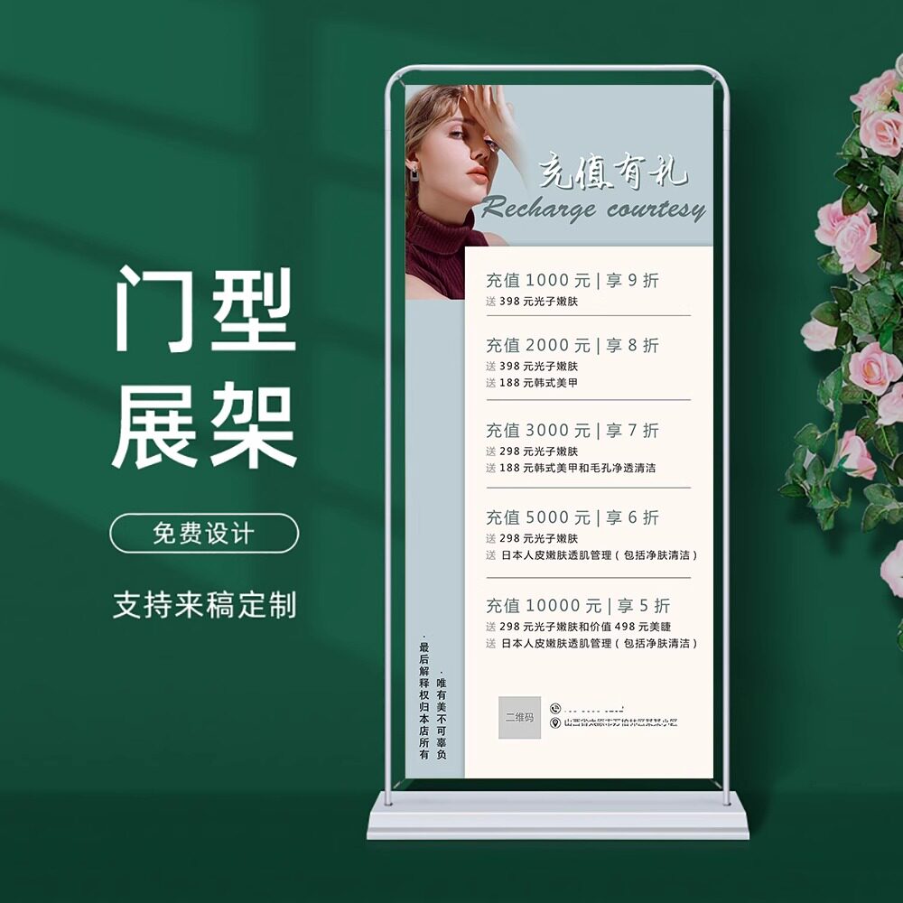 美容美甲美睫纹绣眉眼唇充值开业会员展架周年庆海报贴门型易拉宝