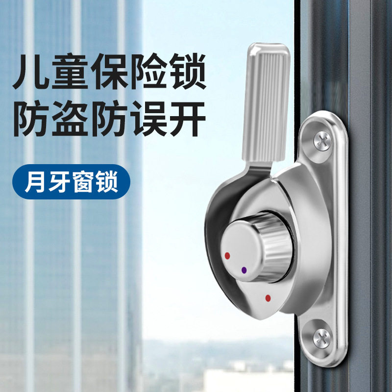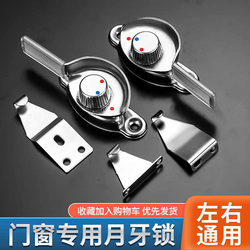 不锈钢老式月牙锁窗户锁铝合金门窗卡扣塑钢窗配件推拉移门安全锁