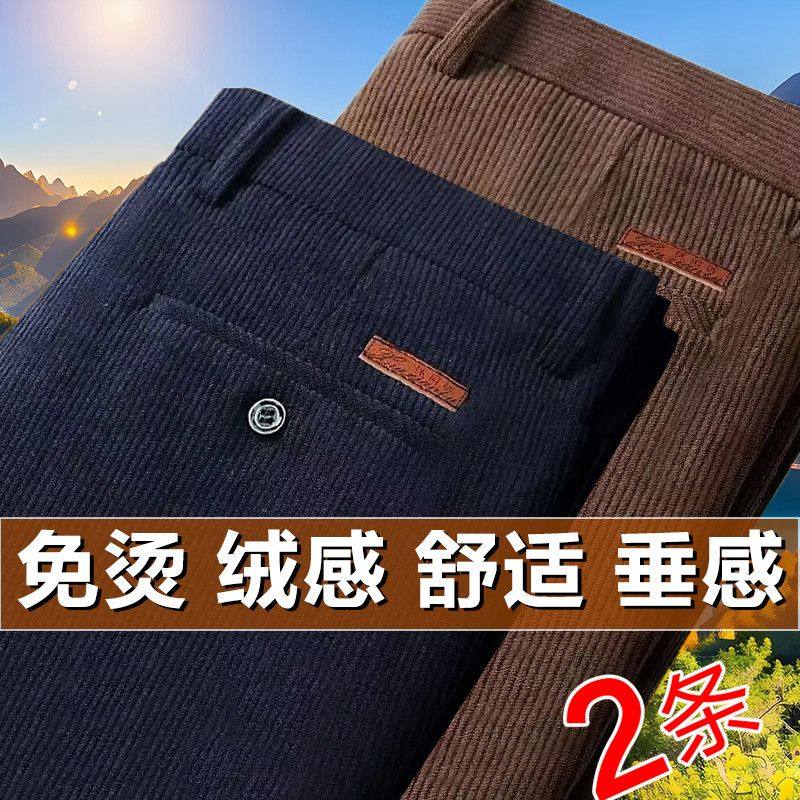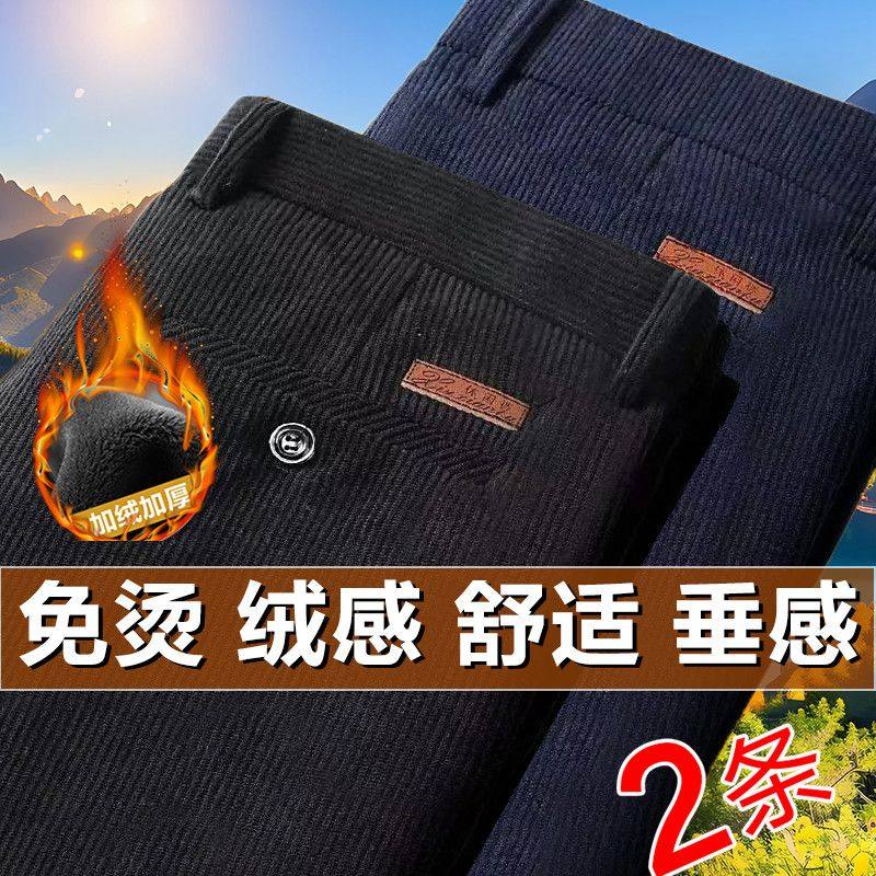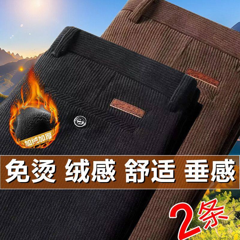 灯芯绒男裤子加绒加厚男士中老年人爸爸装秋冬季条绒休闲裤直筒裤