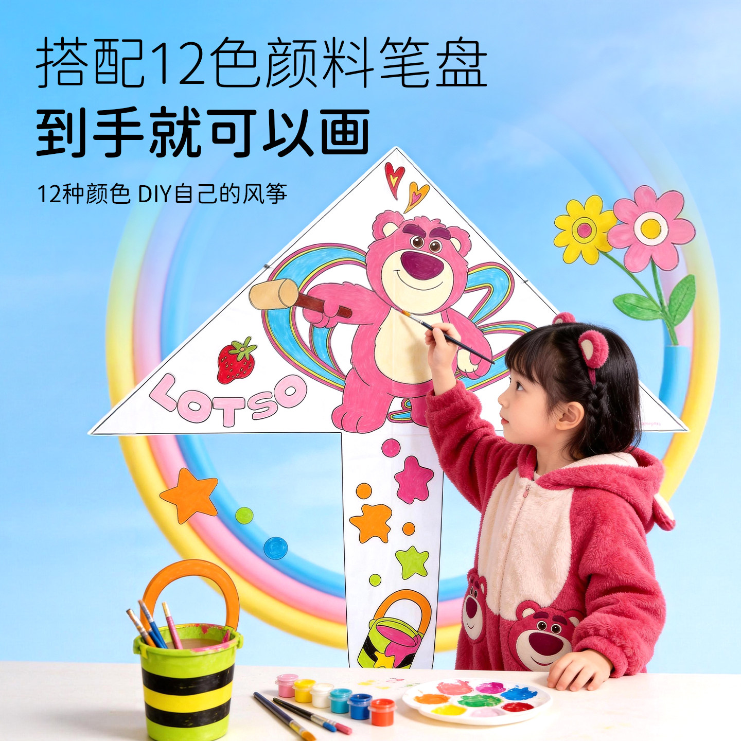 草莓熊风筝diy材料包空白手绘儿童专用小手工涂鸦微风易飞幼儿园