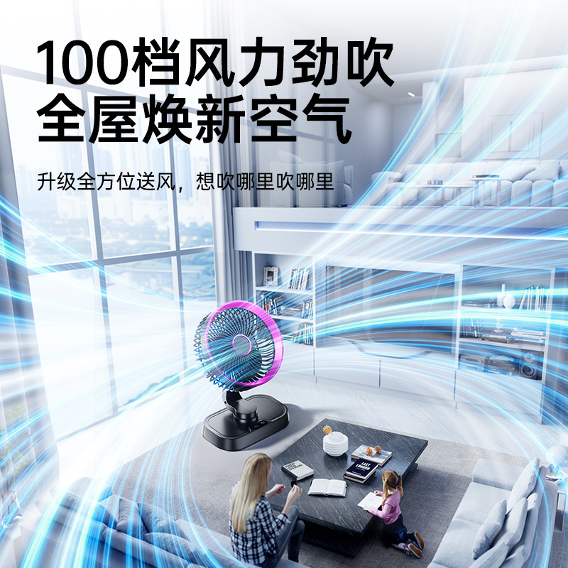 桌面小风扇学生宿舍摇头台式usb充电便携迷你办公室家用轻音静音