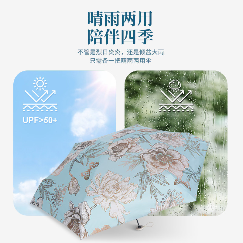 Cmon五折伞太阳伞女防晒紫外线遮阳伞口袋伞黑胶晴雨伞超轻胶囊伞