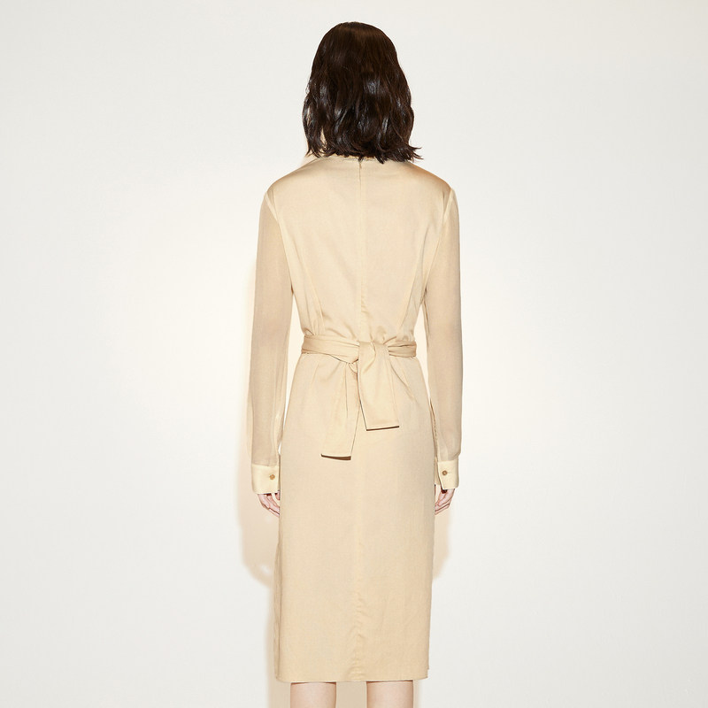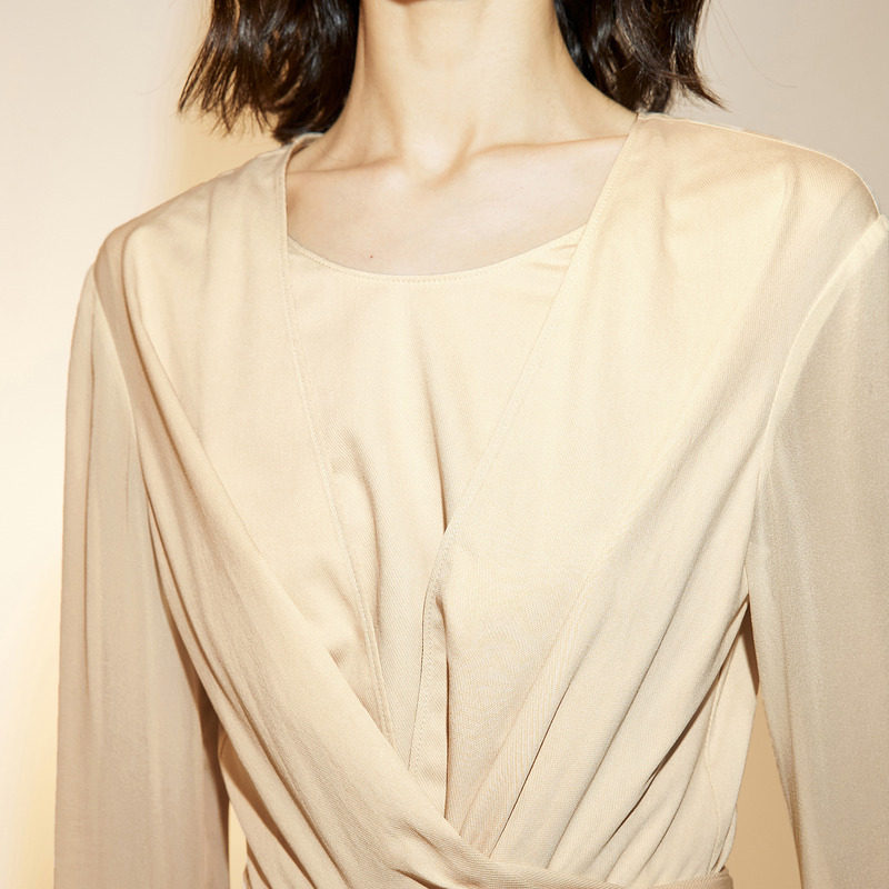 衬衫袖口使用真丝乔其面料拼接,减少闷热感
