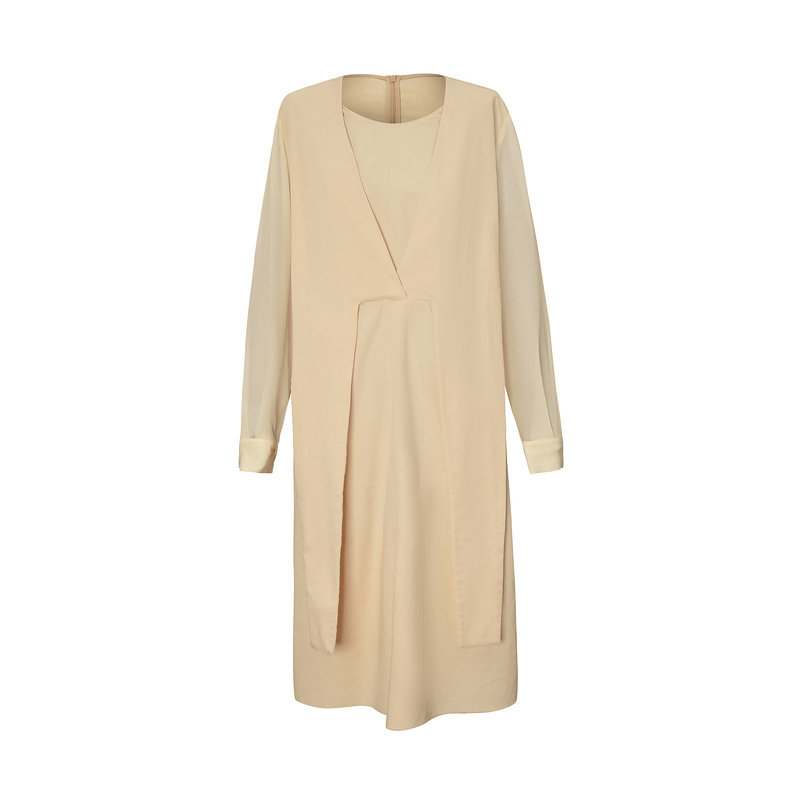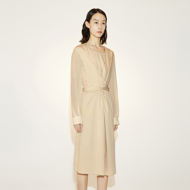 LESS春季裙子女气质修身系带收腰假两件连衣裙2N3G13110