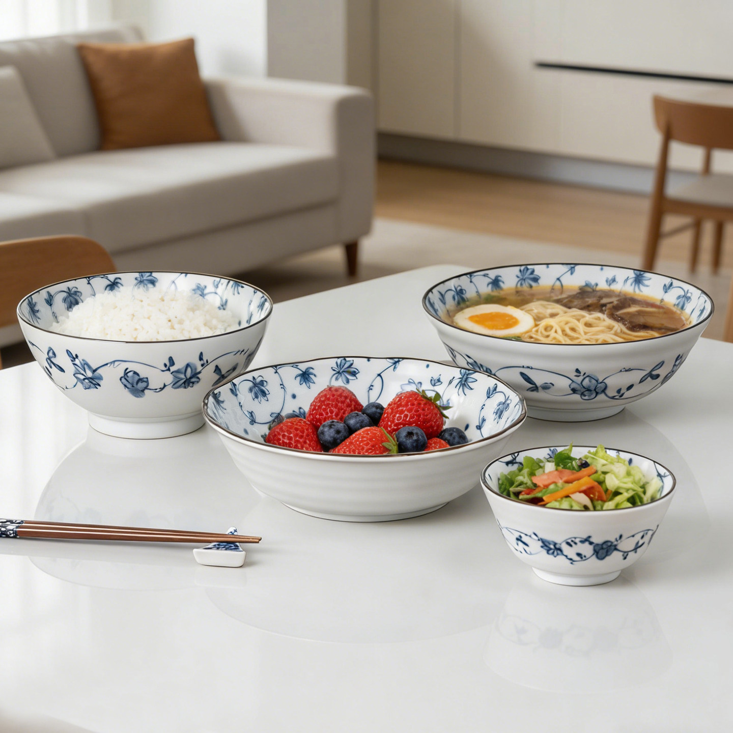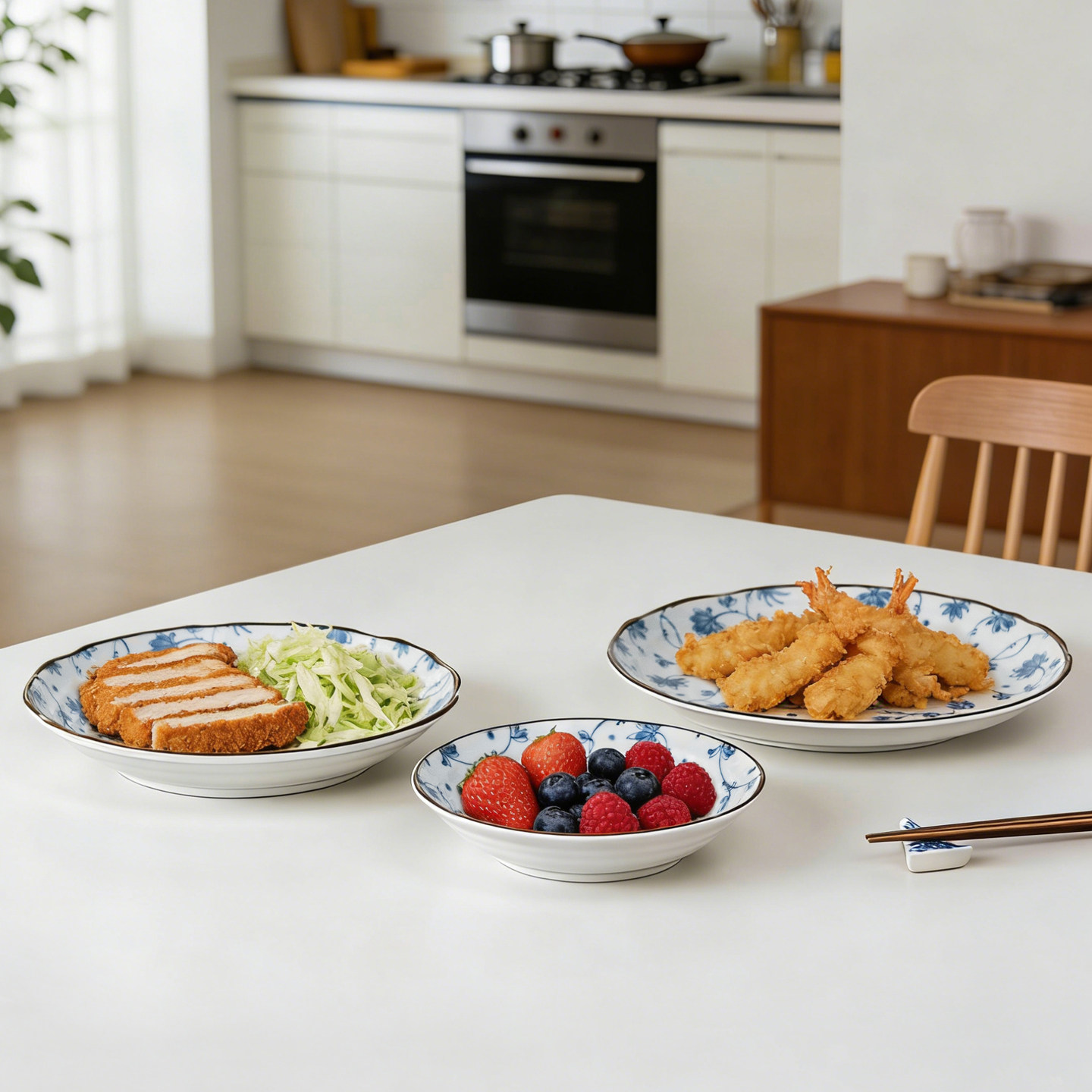 美浓烧日本陶瓷釉下彩餐具套装家用青花盘碗盘碟组合中日式碗碗盘