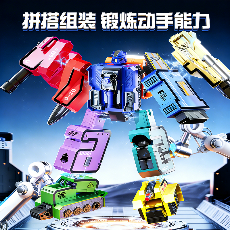 儿童数字变形玩具男孩益智3到6岁金刚机器人套装合体拼装积木礼物