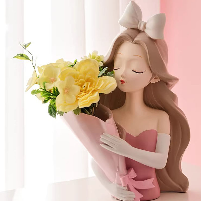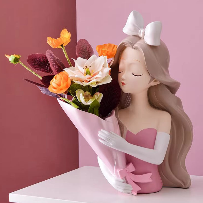花瓶捧花爱丽丝女孩摆件乔迁新居礼物书房样板间客厅桌面家居装饰
