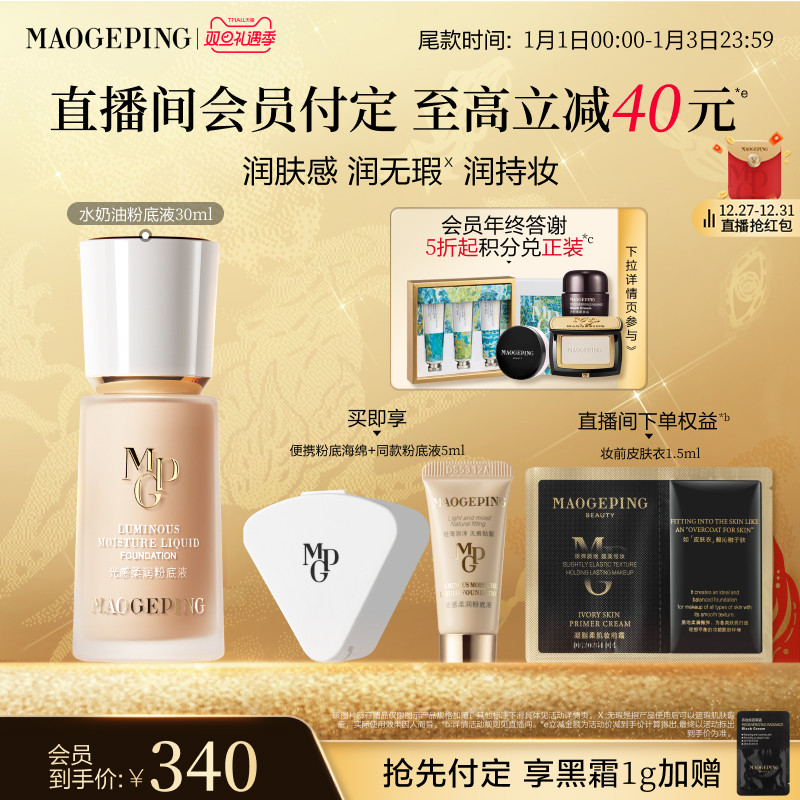 【立即付定】毛戈平光感柔润水奶油粉底液干皮保湿持妆服帖正品