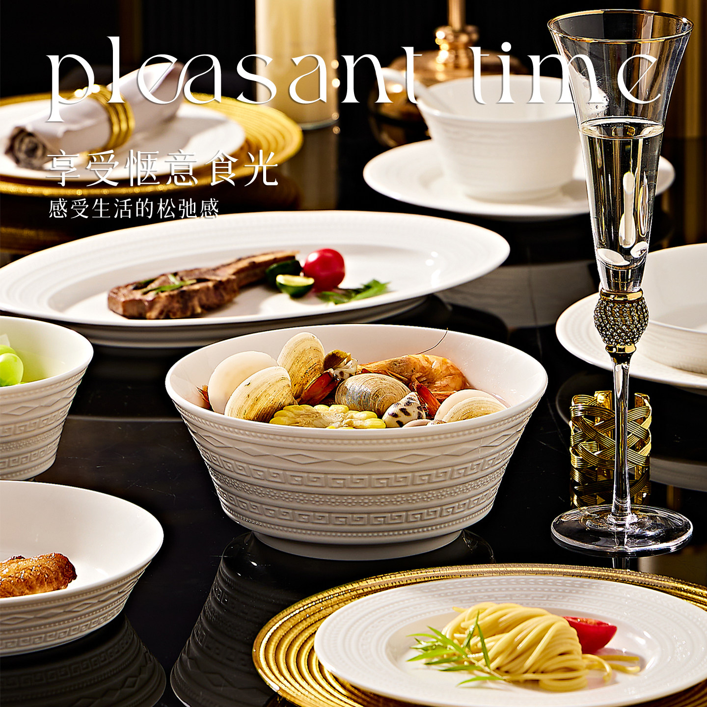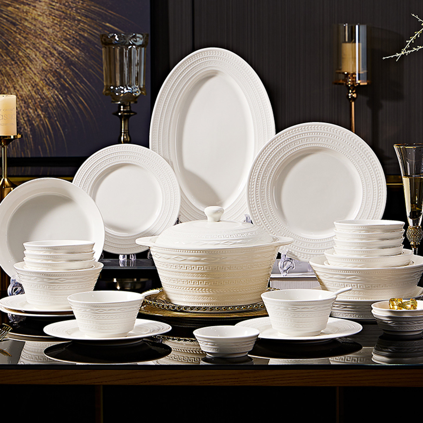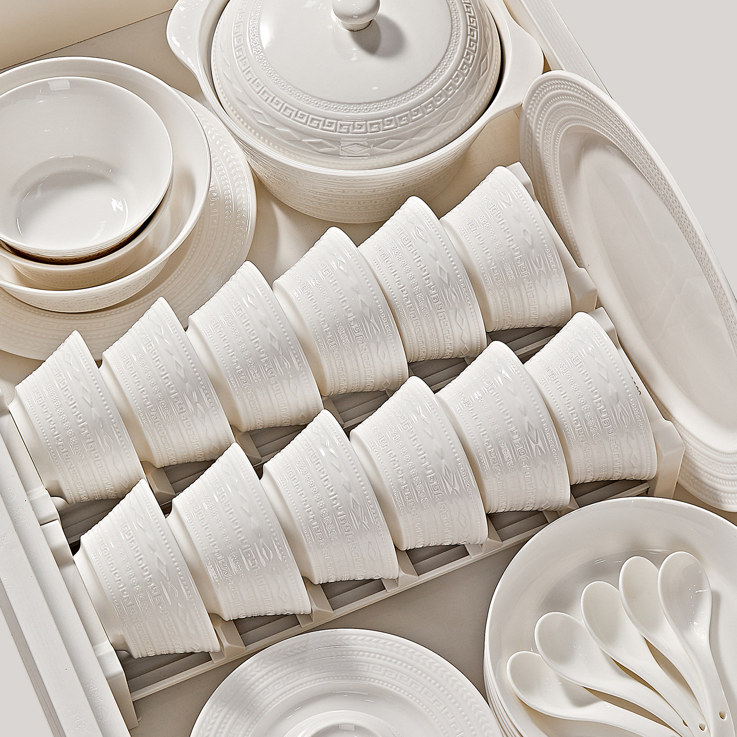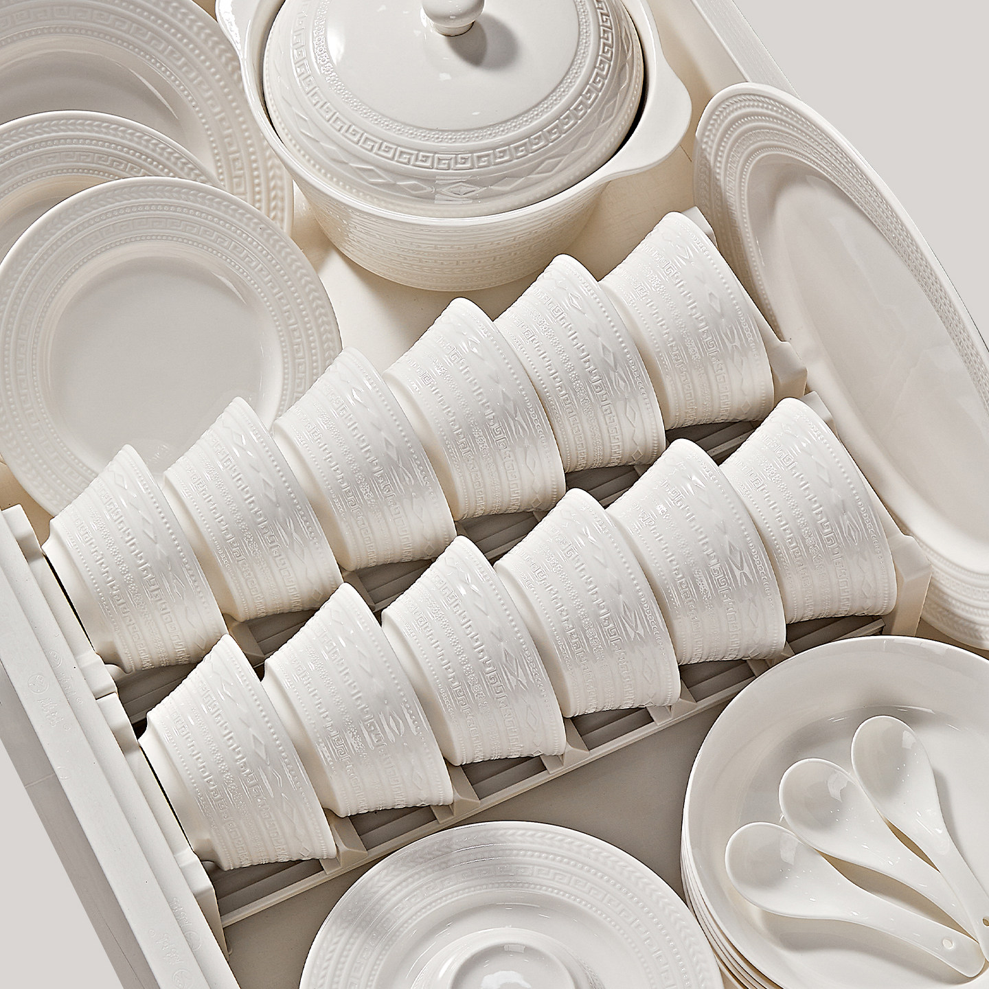 碗碟套装家用2026新款高颜值纯白浮雕餐具高级感小众乔迁碗盘套装