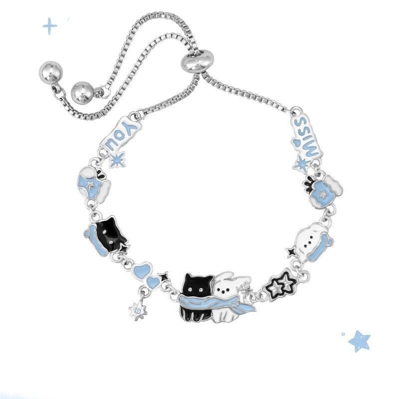 敲可爱!黑猫青苹果手链新款原创小众设计甜酷皮革手环手镯猫咪