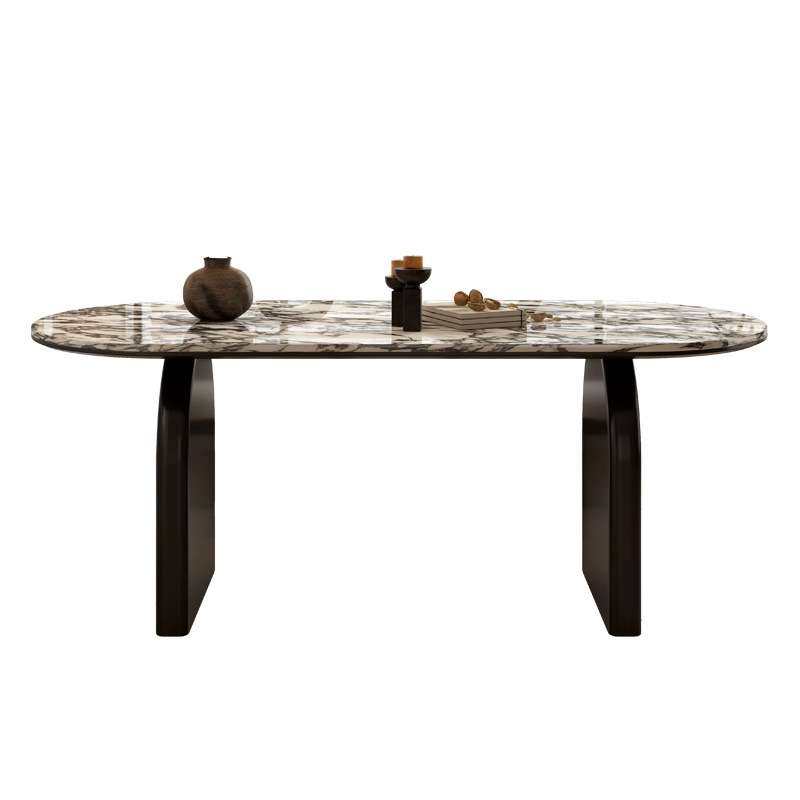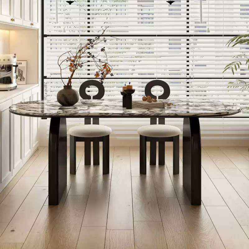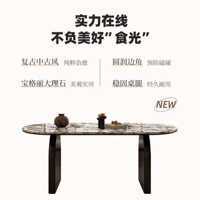 法式大理石餐桌复古轻奢实木小户型客厅家用椭圆形实木餐桌椅组合